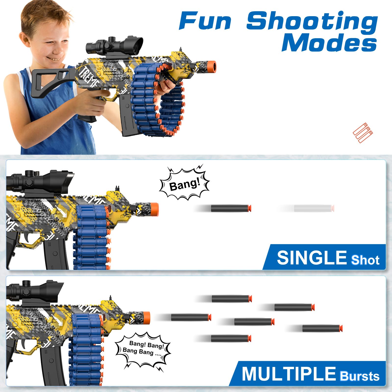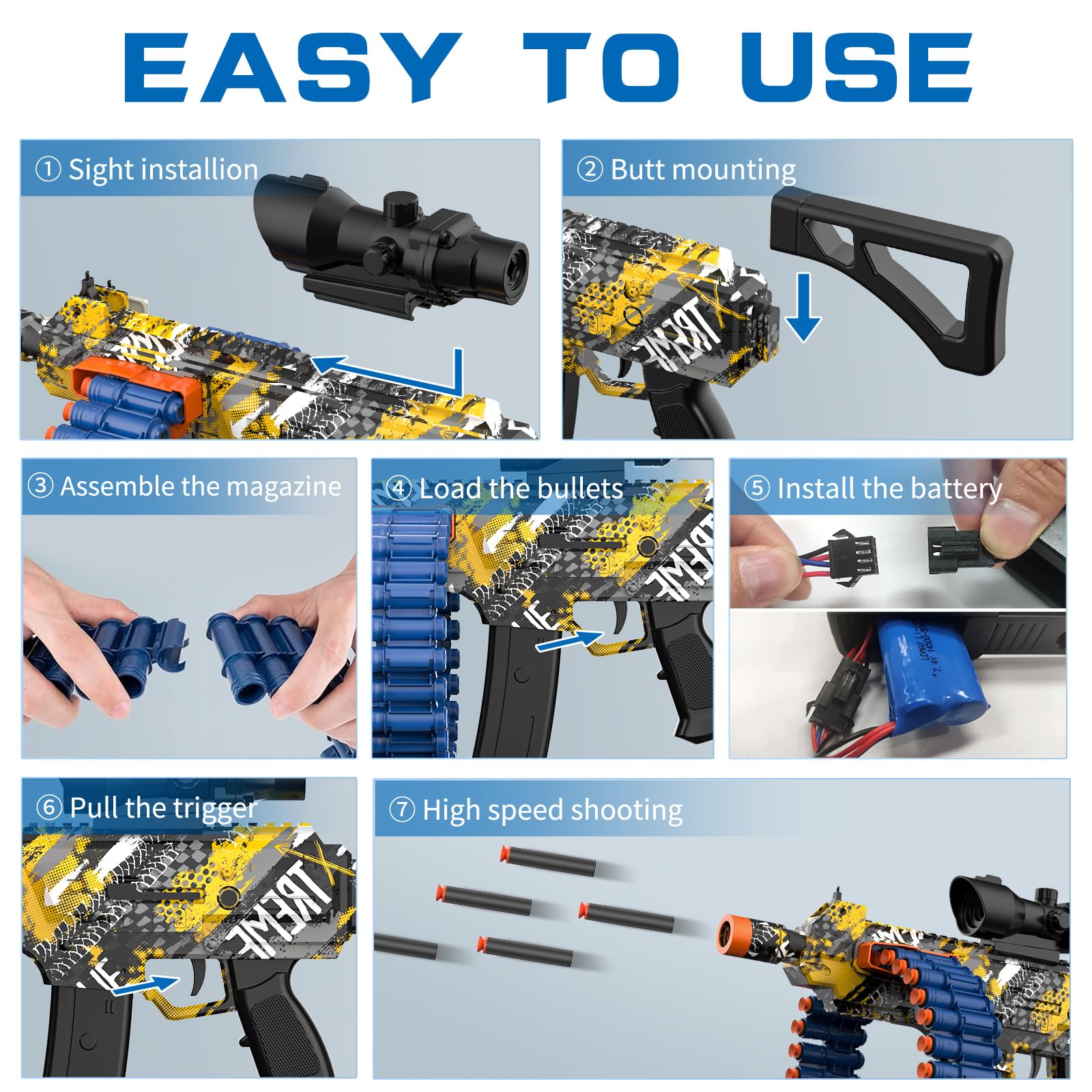 - Q: What comes included with the Electric Automatic Toy? A: The toy comes with 30 dart clips and 100 compatible foam darts, ensuring you have plenty of ammunition for extended play.