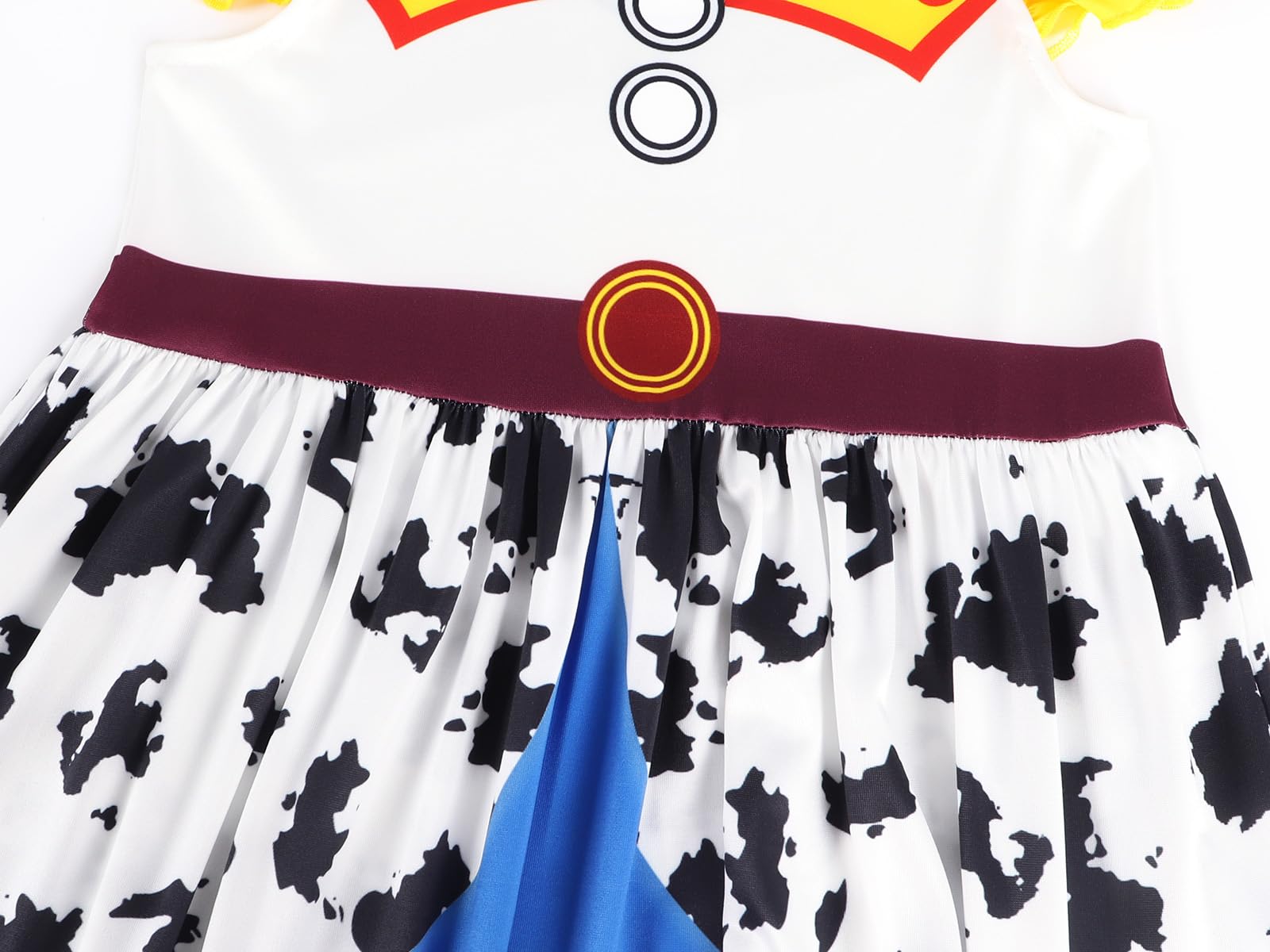 Cowgirls costume for girls casual short sleeve jessie dress fantastic cartoon cosplay princess dress up. | This girl's jessie dress is made from a premium soft and comfortable fabric. Take your kids on a wonderful story tour. | Jessie dress is digitally printed with cartoon graphics clearly visible. Girls' yelllow cowgirls dress is the best gift for your little girl. | Perfect for everyday, Christmas, Halloween, shopping, vacation, role-playing games, outdoor activities, running sports, birthday gifts. | Girls jessie dress fun all-round clothes that your child can wear anywhere and experience the fun of a cowgirls story.