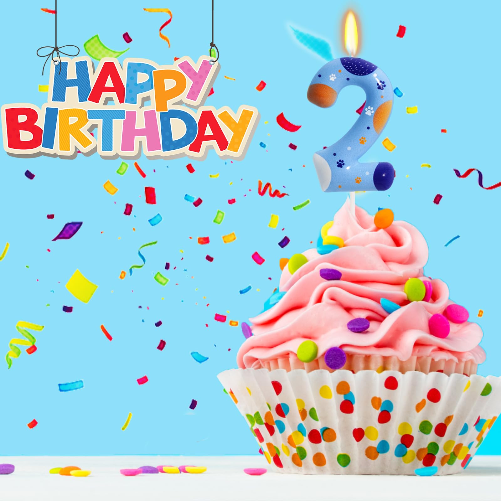 ElekFX Blue Dog Paw Birthday Candles, Number 2 Paw Print Birthday Party Supplies, 2.76 inch Paw Cake Topper Decorations, Birthda