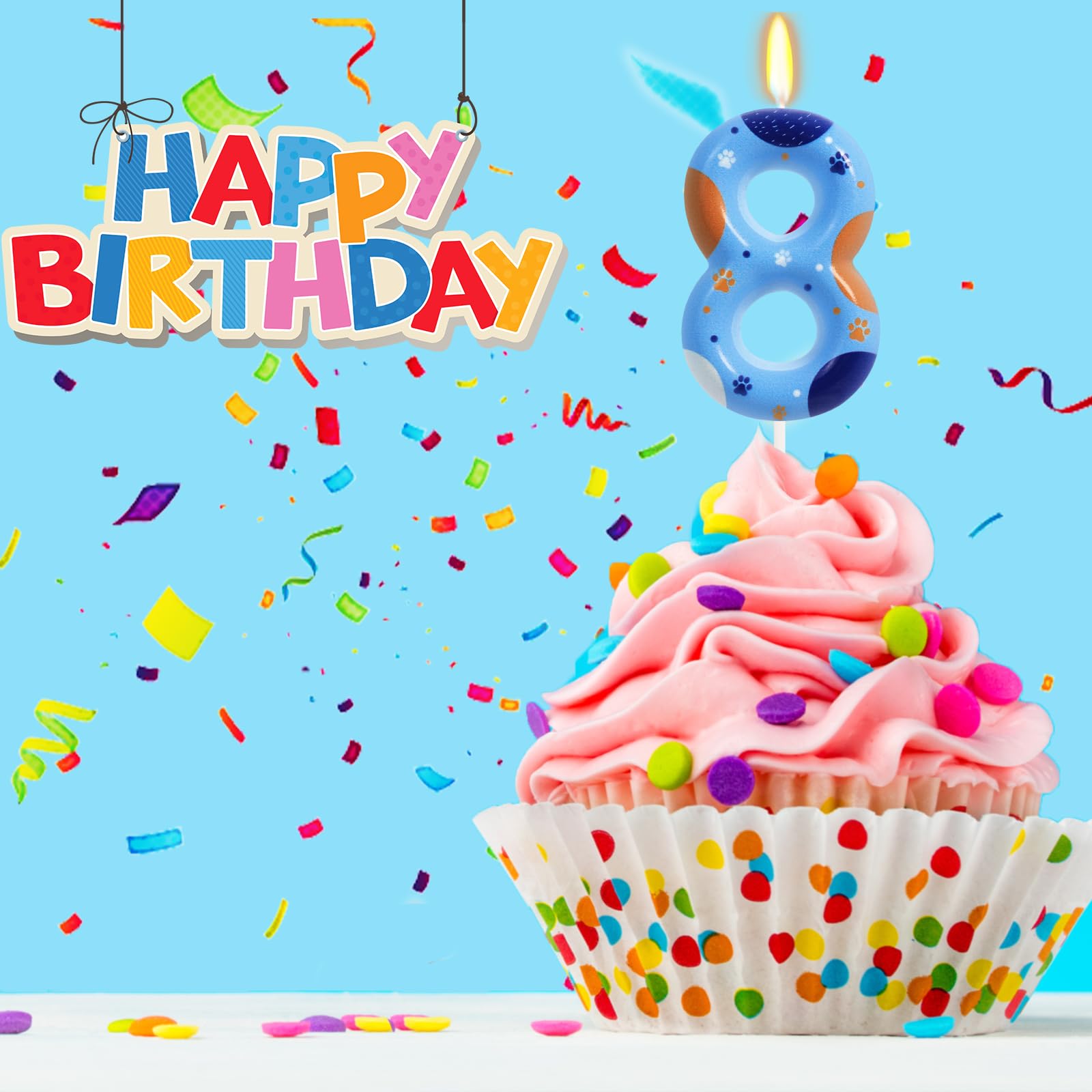 View compareElekFX Blue Dog Paw Birthday Candles, Number 8 Paw Print Birthday Party Supplies, 2.76 inch Paw Cake Topper Decorations, Birthda