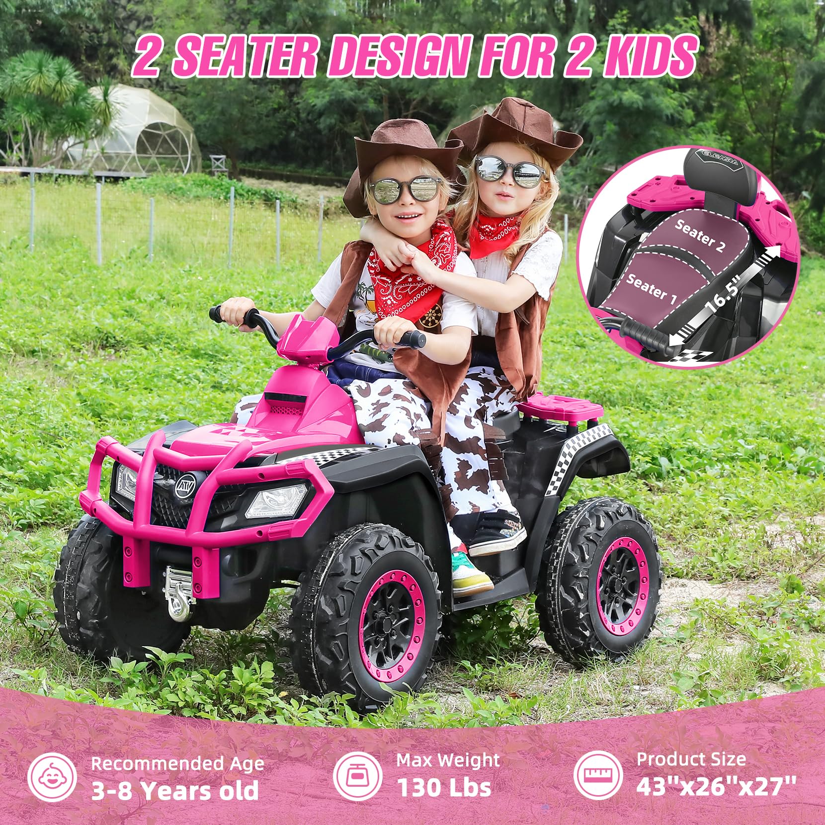 ELEMARA 2 Seater Ride on ATV, 4 Wheeler Quad Ride on Toy with 10AH Battery, Ride on Electric Big Kids