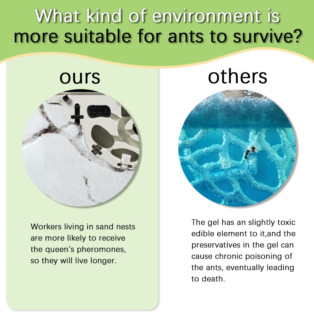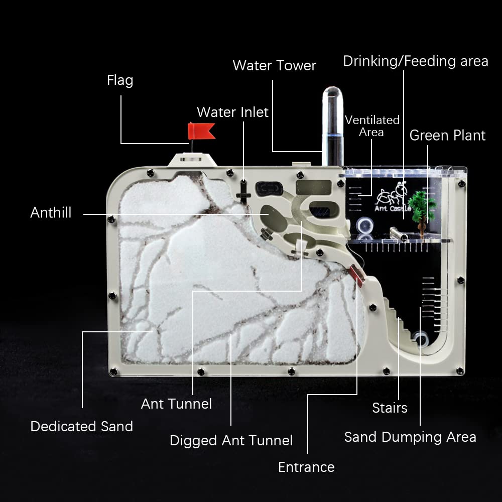 - Q: How do I care for the ants in the ant habitat? A: To care for your ants, simply add water every 10 days through the refill hole. The automatic water supply system helps keep the ant habitat moist, which is essential for their survival.