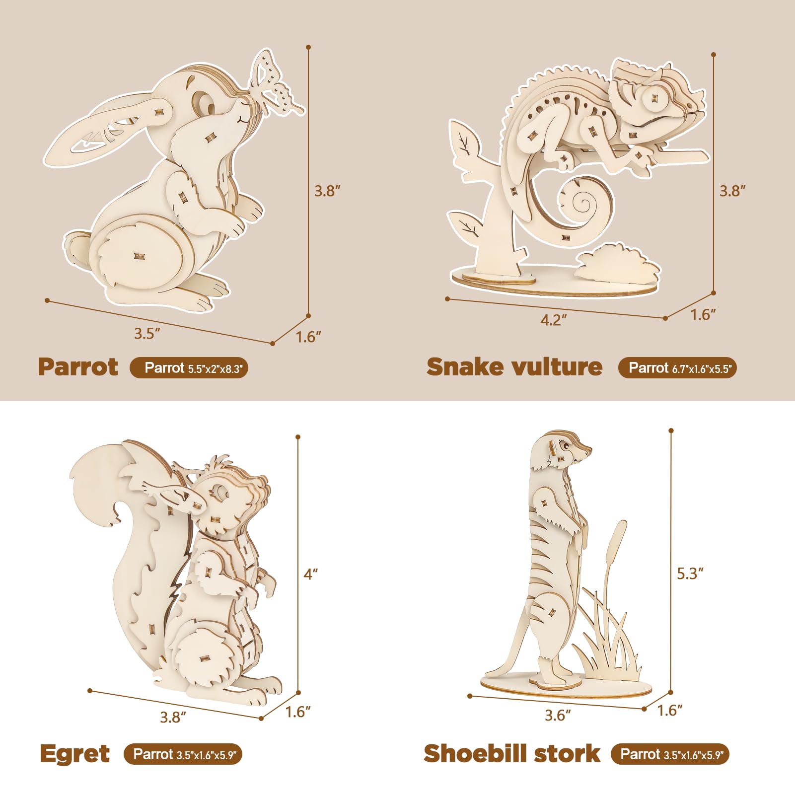 Elx Wooden 3D Puzzles For Kids 6+, 4 Piece Set Animal Wooden Models, Wood Building Kits Stem Toys Peresents For Kids And Adults