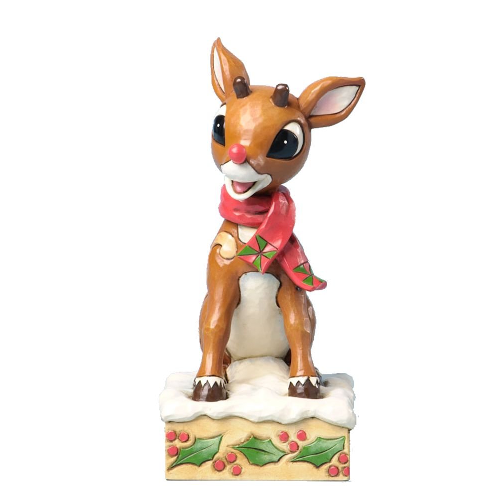• Q: What makes the Enesco Jim Shore Rudolph Traditions figurine unique? A: The Enesco Jim Shore Rudolph Traditions figurine is unique due to its meticulous hand-crafted design and the distinctive folk art style of Jim Shore, which features a charming color palette and intricate detailing. This collectible captures the classic essence of Rudolph the Red-Nosed Reindeer, making it a delightful addition to any holiday decor.
