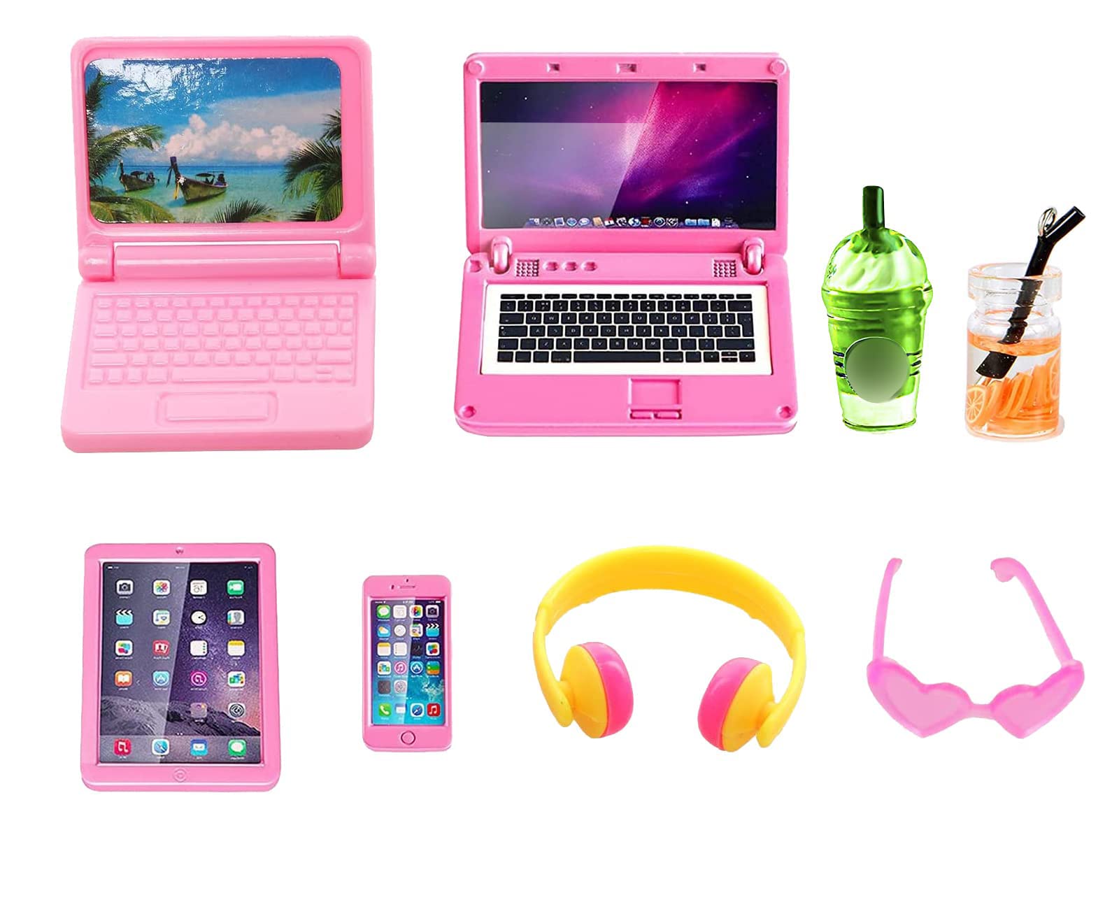 View compareEnocht 9 Pack Small Size Laptop Computer Tablet Phone Pad Glasses And Headset Doll Playset Simulation Accessories For 11.5 Inch Doll (Pink)