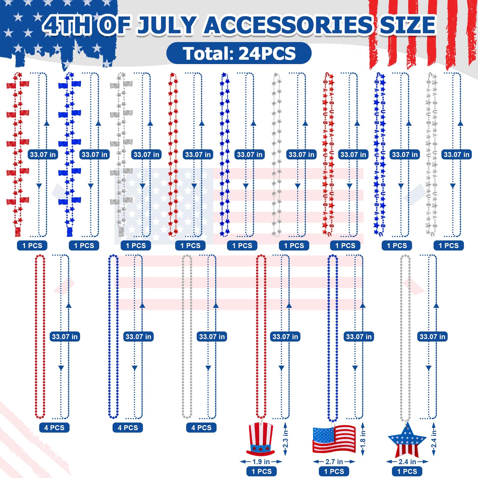 EOBOH 4th of July Necklace Accessories, 24PCS Independence Day Beads Necklaces Bulk, 15 Kinds Fourth of July Red Blue White Star