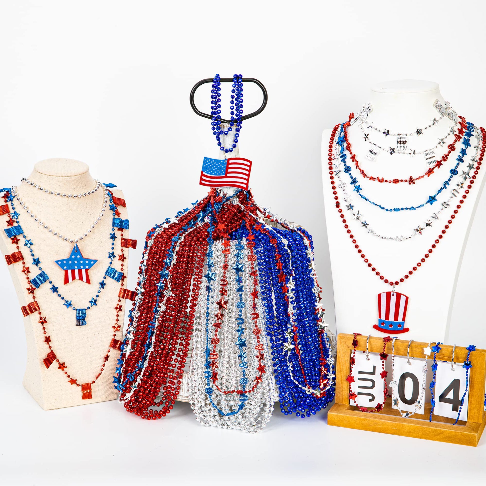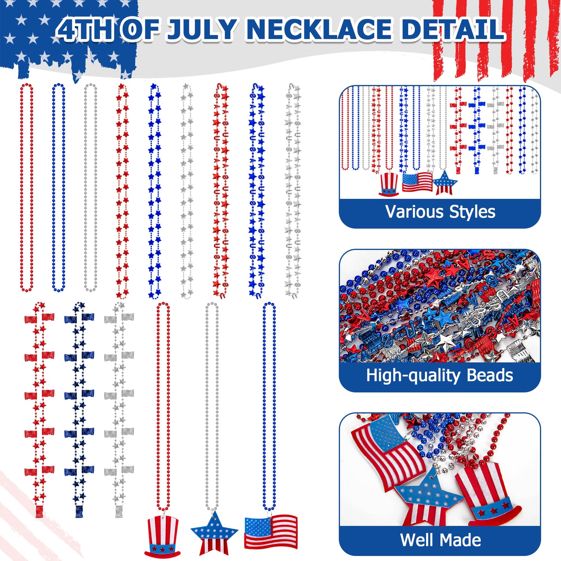 View compareEOBOH 4th of July Necklace Accessories, 24PCS Independence Day Beads Necklaces Bulk, 15 Kinds Fourth of July Red Blue White Star