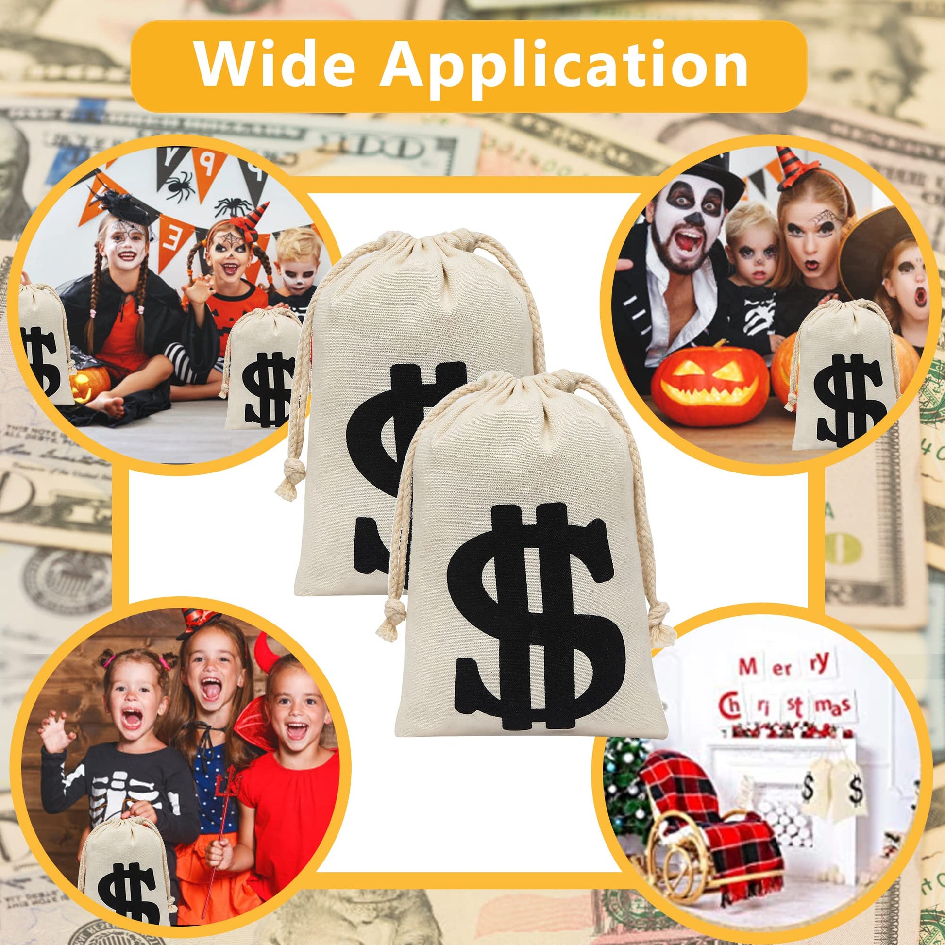 Eoocan 4 Pack Canvas Natural Money Bag Pouch With Drawstring Closure For Toy Party Favor, 6.3 X 9 Inches Money Bags Dollar Sign For Bank Robber Pirate Cowboy Halloween Cosplay Theme Party