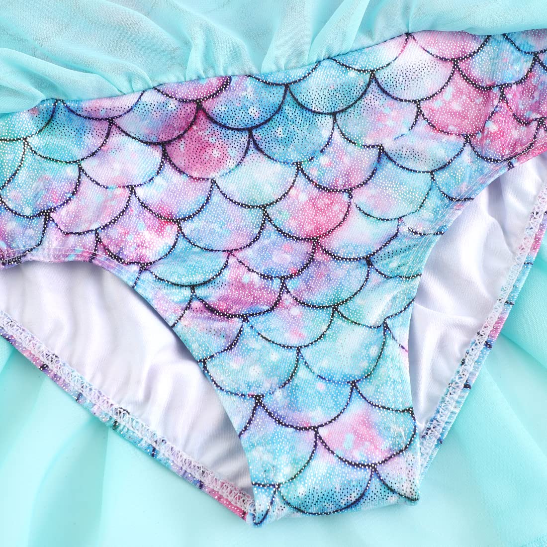 View compareEqsjiu Girls Gymnastics Leotards With Skirt Toddlers Dresses Skirts For Dance 2T 3T Mermaid Scales Green Aqua Colorful