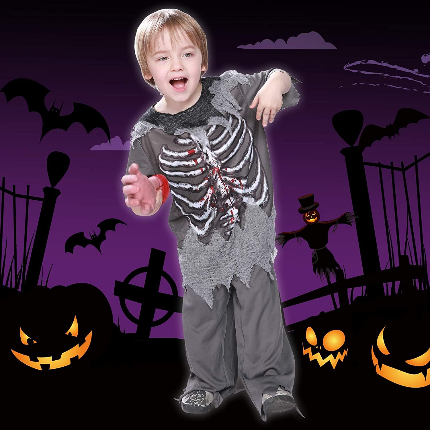 Eraspooky Skeleton Bloody Zombie Boy Costume Horror Halloween Kids Fancy Dress Outfit (Small)