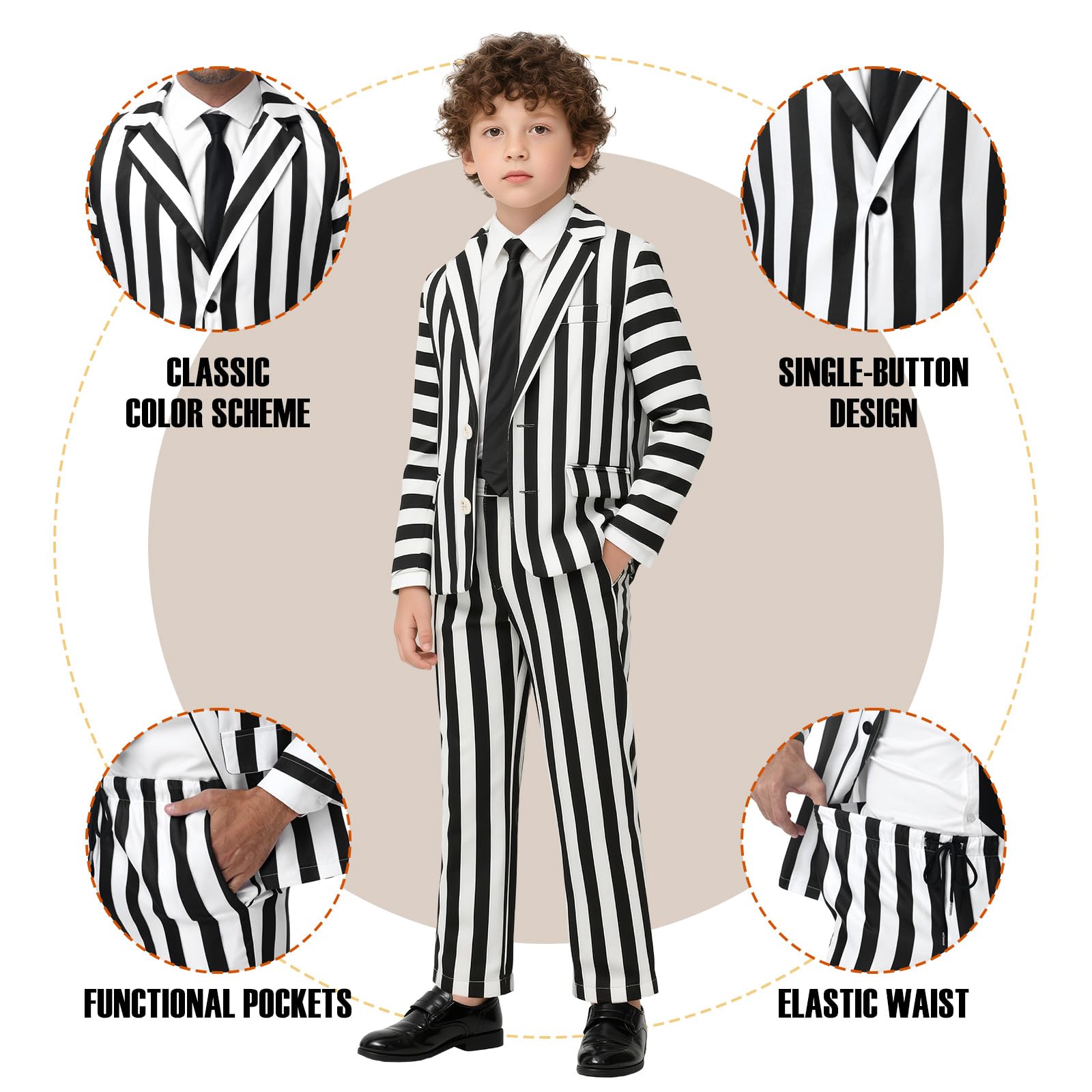 Black and White Striped Suit - Kids Halloween Horror Costume Scary Cosplay Outfit Scary Movie Character Dress-Up