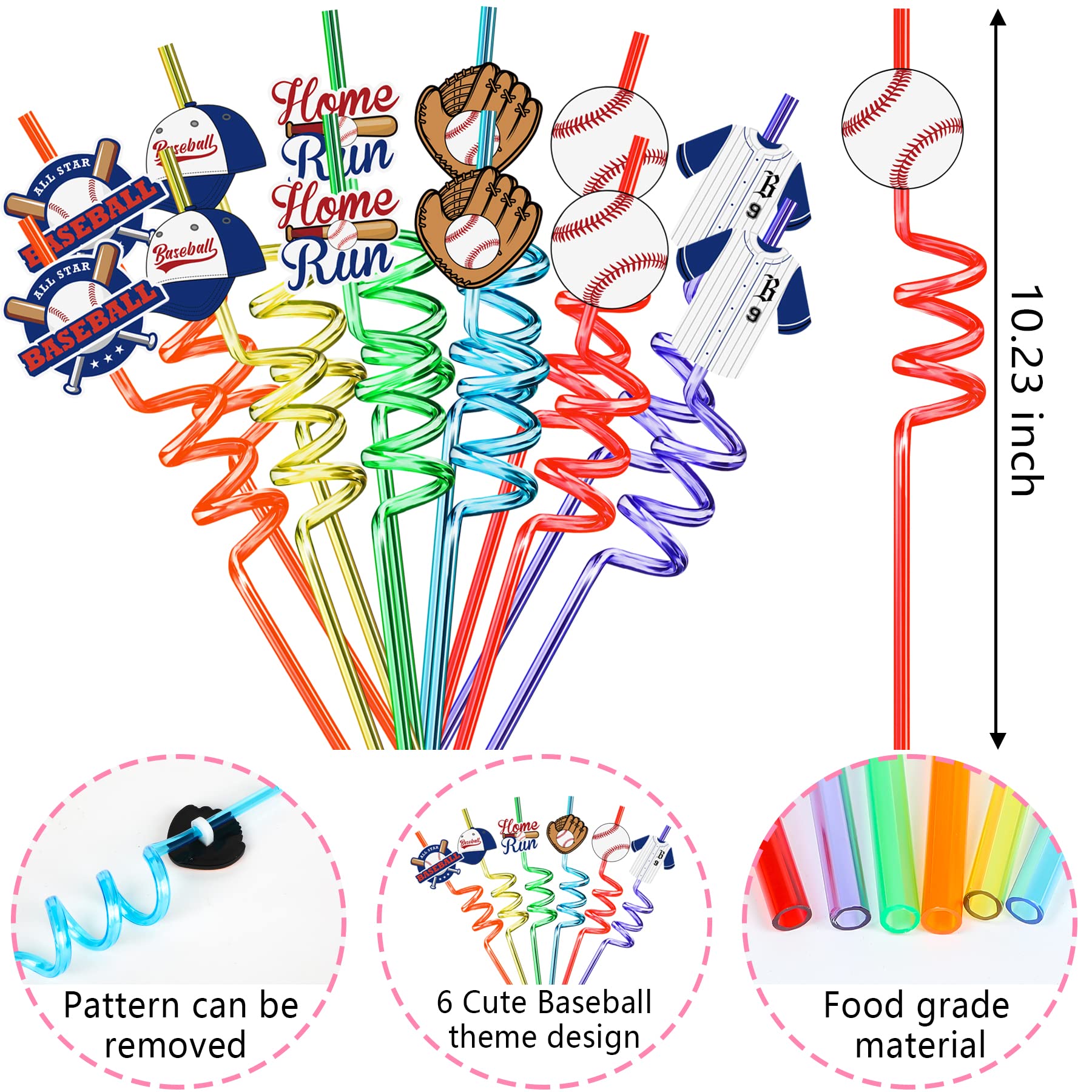 PACKAGE INCLUDE - Baseball Party Favors includes 12 PCS Baseball Slap Bracelets, 12 PCS Baseball Silicone Bracelets, 12 PCS Baseball Plastic Straws, 12 PCS Baseball Party Gift Bags, 12 PCS Tattoo Stickers, 12 PCS Mini Baseball Bouncy Balls. | SAFE MATERIAL - Baseball party favors are made of safe and harmless materials, non-toxic and no harm, is very safe for kids to use. | UNIQUE DESIGN - Baseball party favors are designed with classic baseball elements, such as red, white and blue, three main color, which makes this party supplies vivid and vibrant,adding more fun to baseball birthday party and creating a more joyful party! | MULTIPLE OCCASIONS- Baseball party favors prefect for baseball theme party, kids birthday party, sports themed party, outdoor sport activities, baby shower, goodie bags, pinata fillers, school classroom rewards, party giveaway, and so on. | CUSTOMER SERVICE - We are committed to providing quality products and services to our customers. If you have any question pls feel free to contact us, We will reply you within 24 hours and solve it for you as soon as possible.