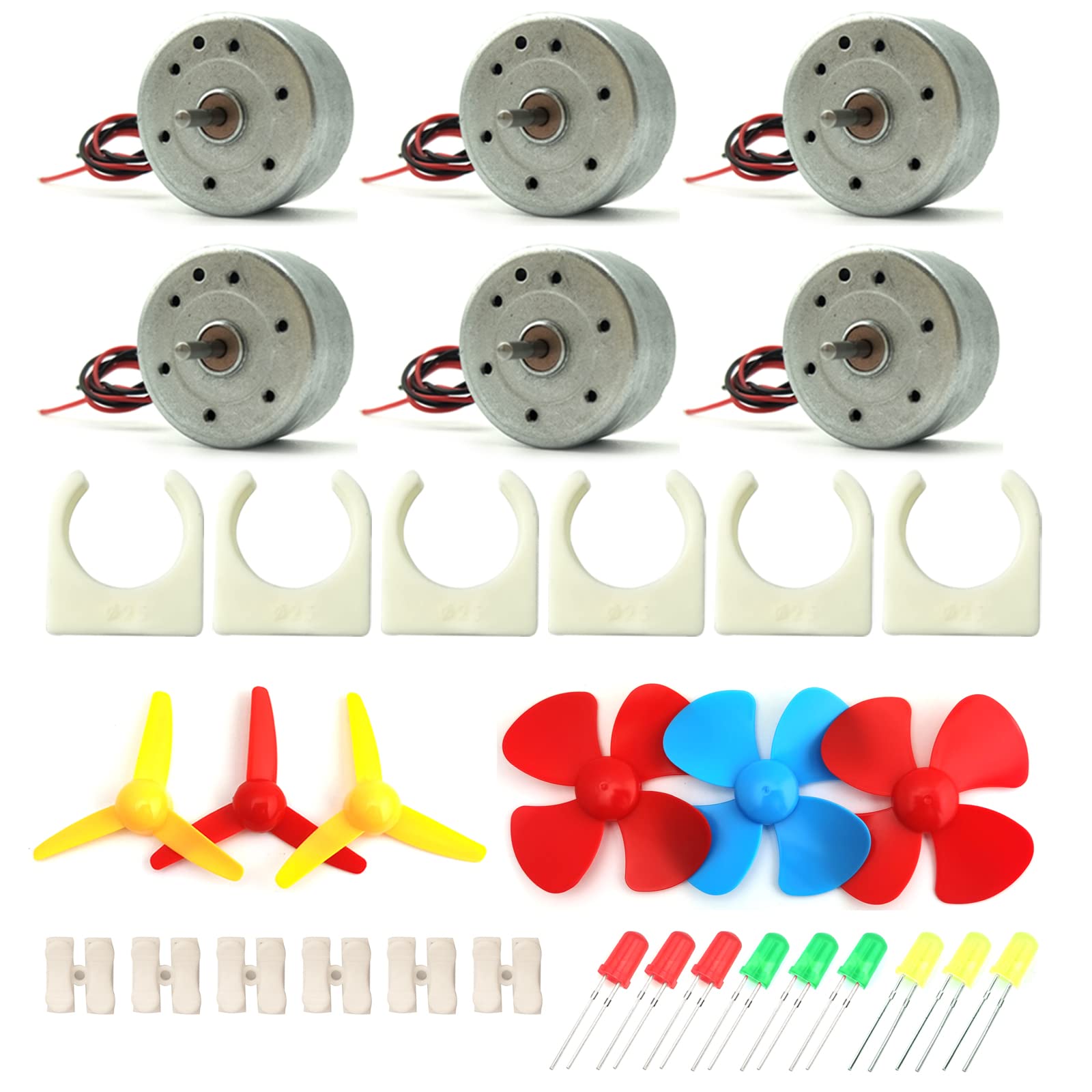 - Q: What items are included in the package with the motor? A: The package includes 6 Generator DC Motors, 6 Motor Mounting Bracket Holders, 6 random color propellers, 6 quick connectors, and 9 mini LEDs, providing everything needed for various projects.