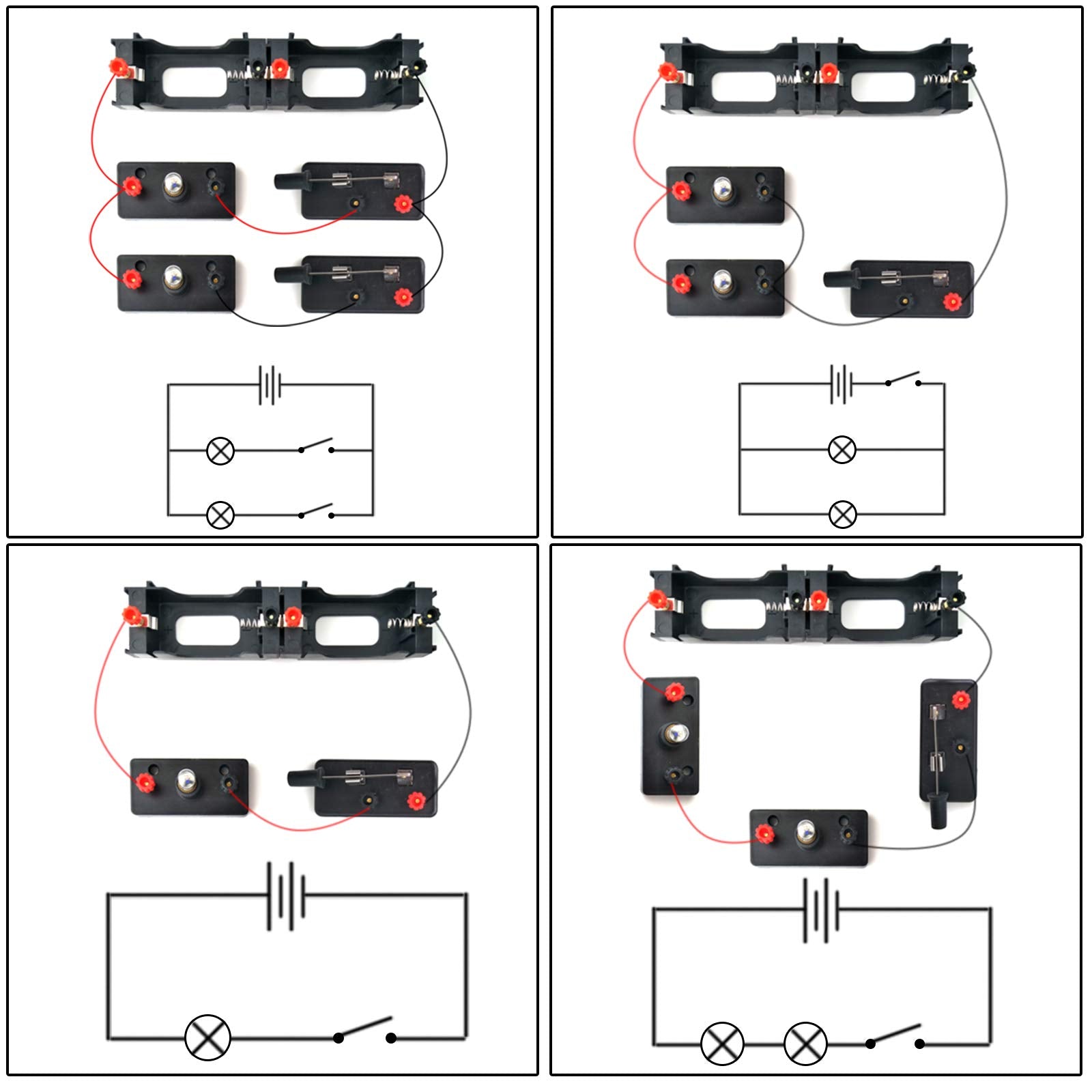 The Basic Electricity circuit kit can build various kinds of the series and parallel circuits like the basic circuits in the book