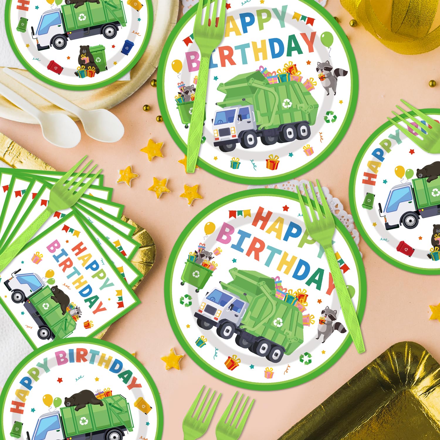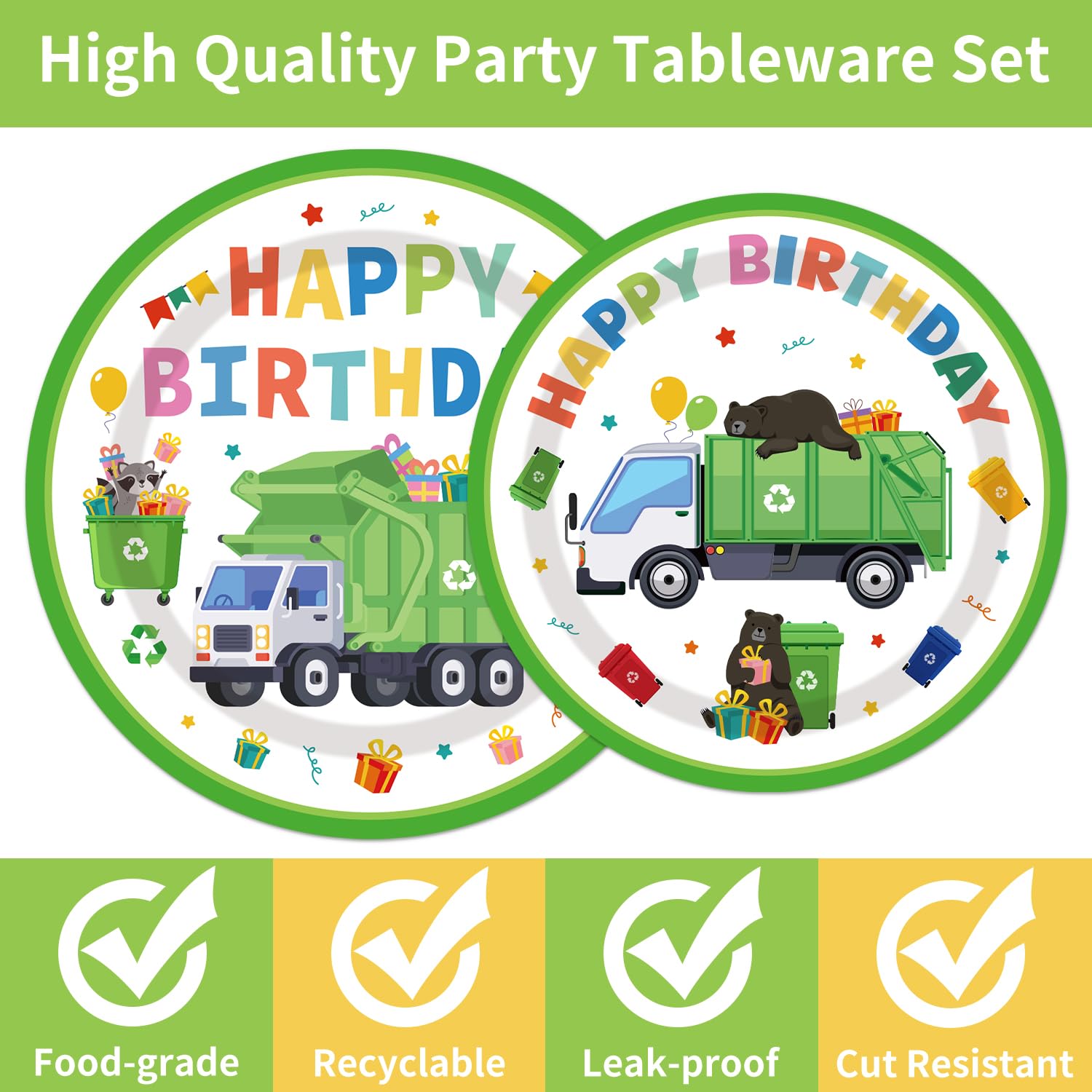 EUOYUFO 96PCS Garbage Trash Truck Plates and Napkins Party Supplies Trash Truck Birthday Party Decorations Waste Management Recy