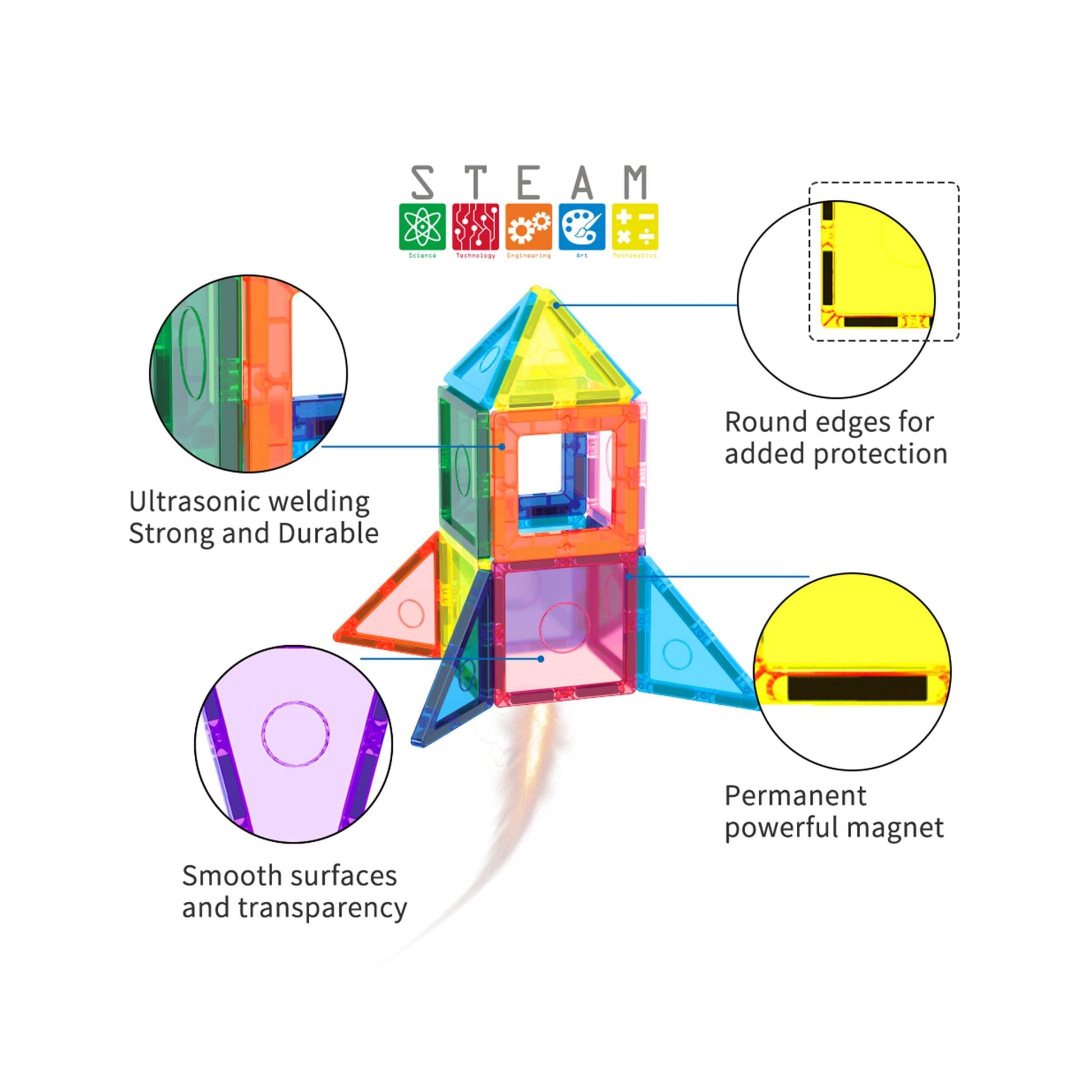 View compareEverplay 110 pc Magnetic Tiles with Car Set, Building Blocks Toys STEAM Educational Learning Magnet Toy Preschool Montessori Boy