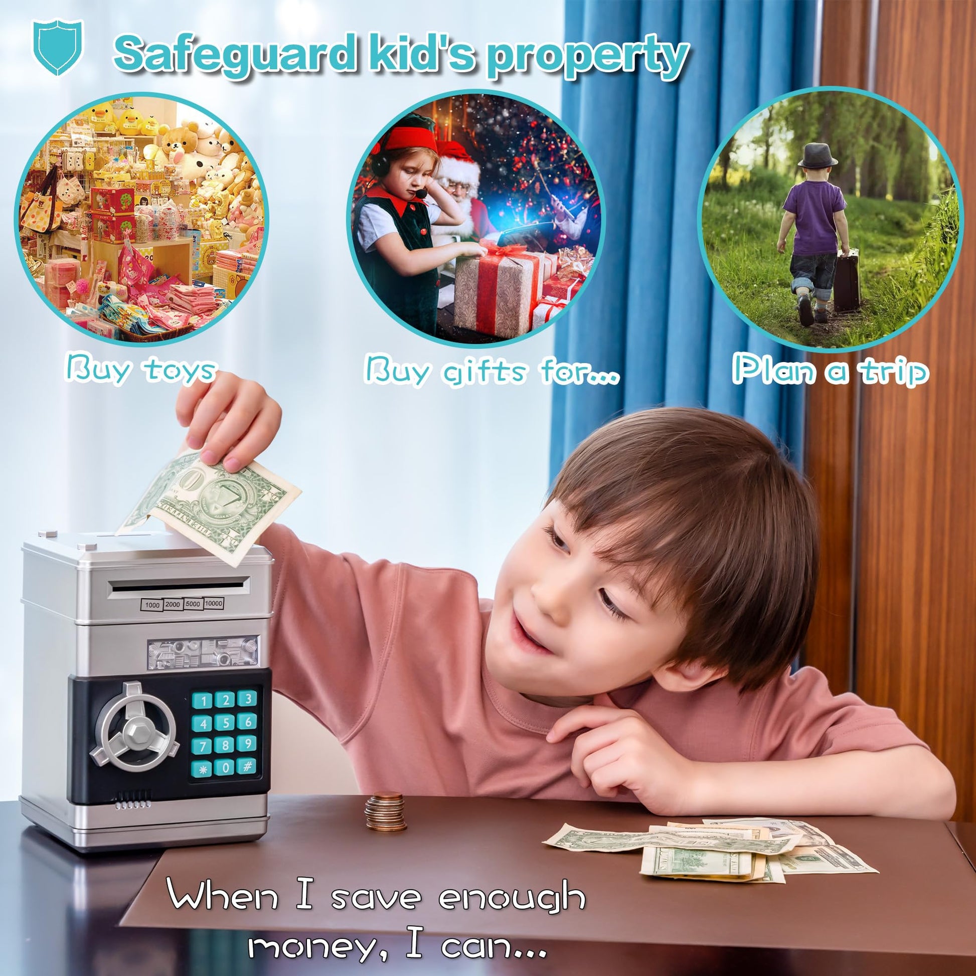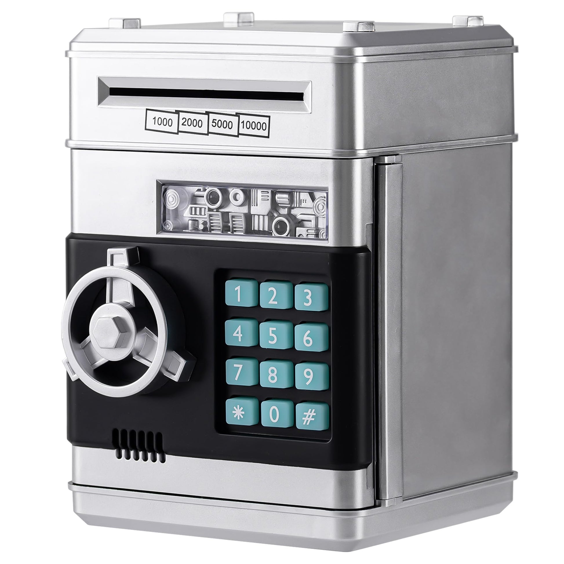 EVTHSU Silver Electronic ATM Safe Piggy Bank for Kids - Real Money Savings Coin Bank with Code Lock & Password, Gift Money Box f