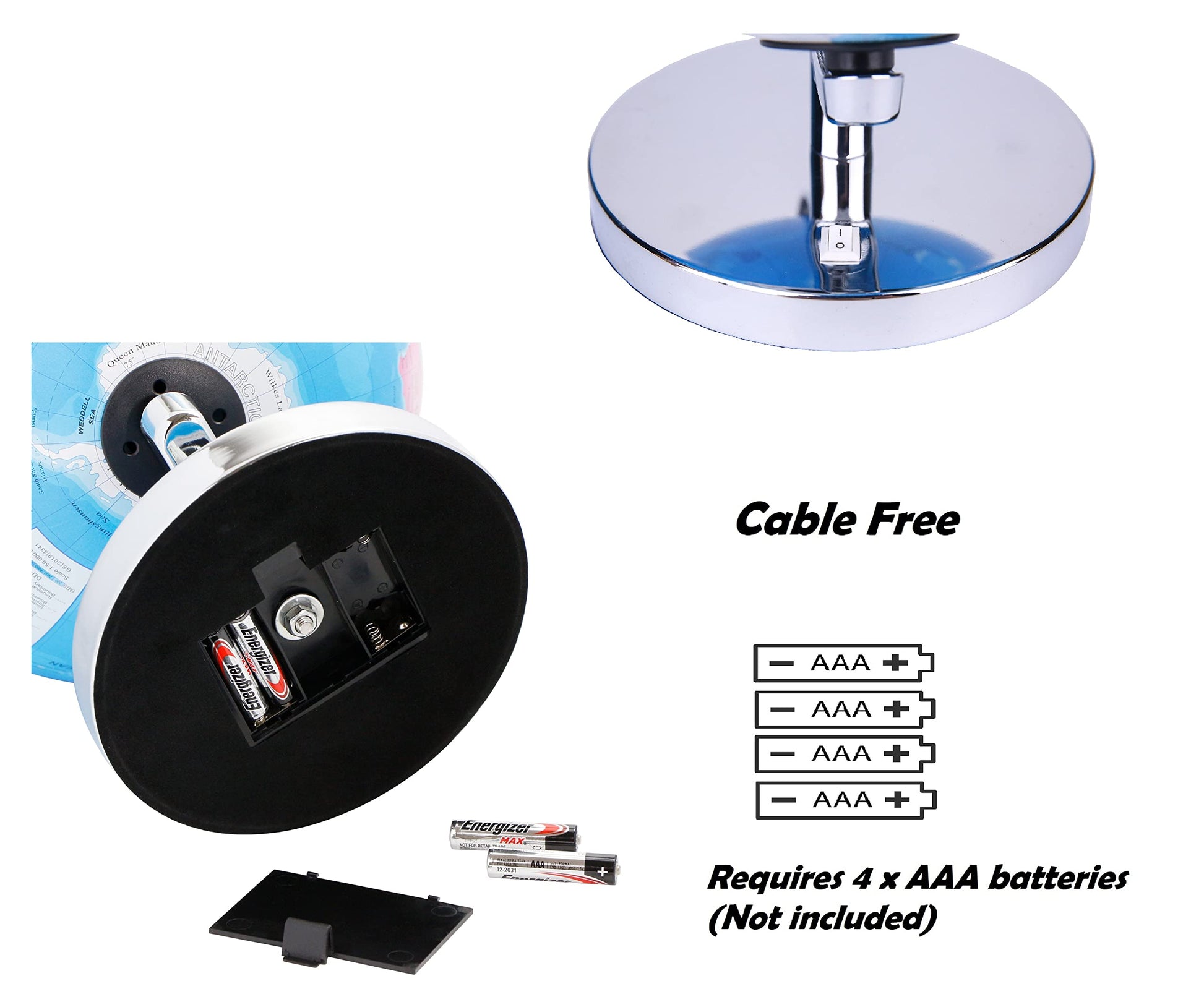 - Q: What type of batteries does the globe require? A: The globe operates on a battery-only system and requires 4 x AAA batteries, which are not included with the purchase.