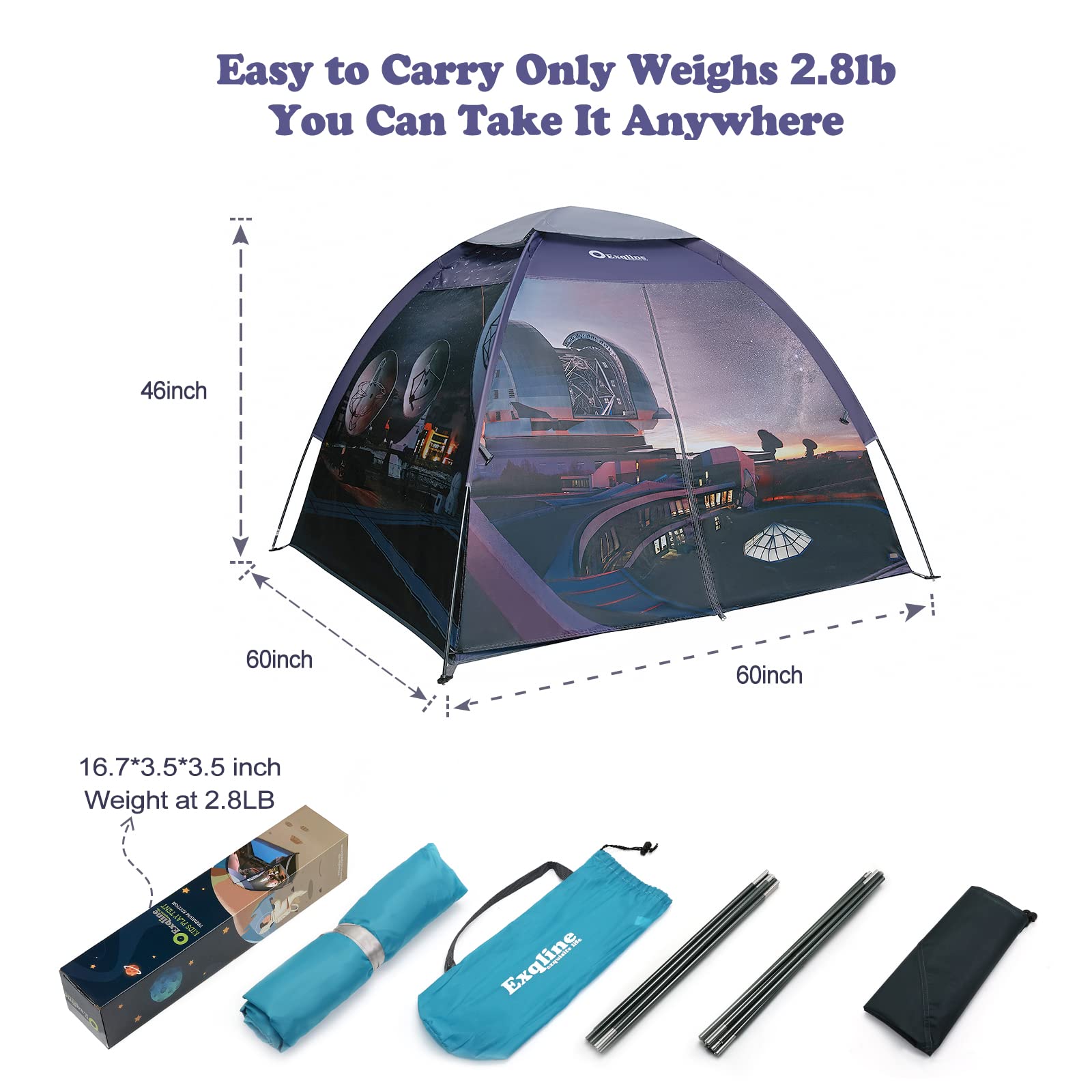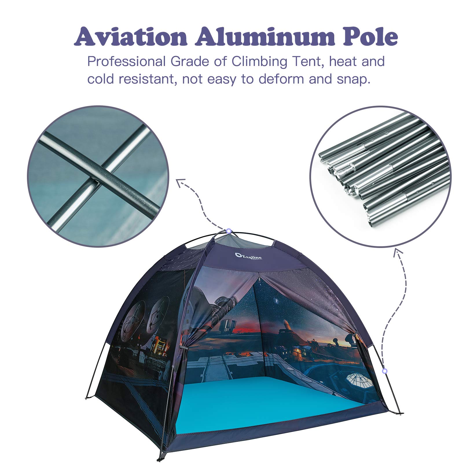 Exqline Kids Play Tent Indoor, Large Playhouse With Professional Aviation Aluminum Pole For Boys Girls, Indoor And Outdoor Space Theme Playing And Camping Tent, Gift For Kids - 60 X 60 X 46Inch