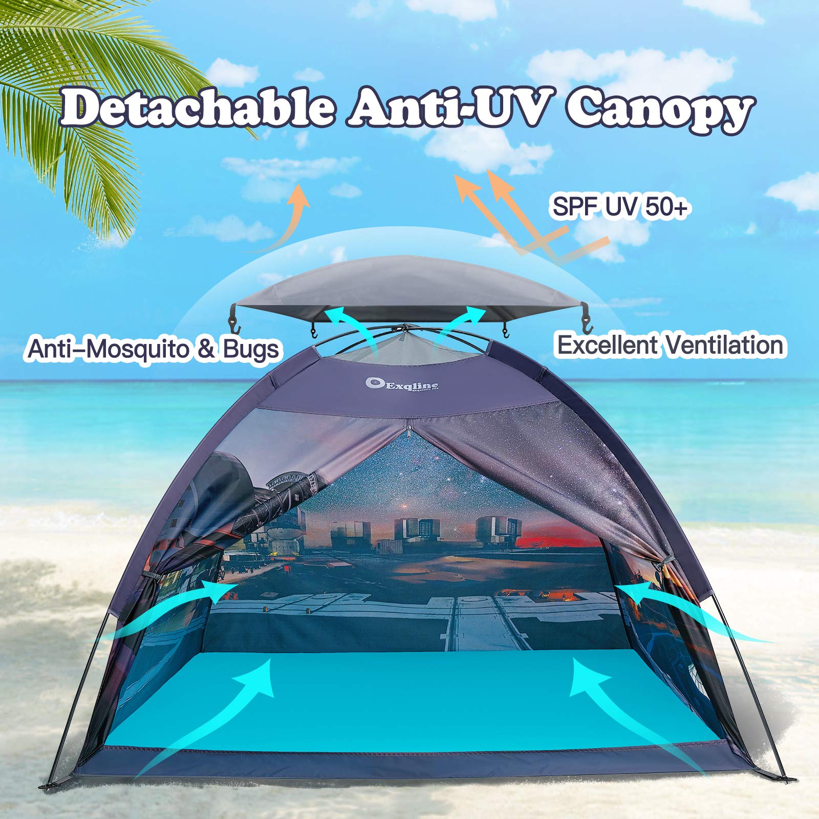 View compareExqline Kids Play Tent Indoor, Large Playhouse With Professional Aviation Aluminum Pole For Boys Girls, Indoor And Outdoor Space Theme Playing And Camping Tent, Gift For Kids - 60 X 60 X 46Inch
