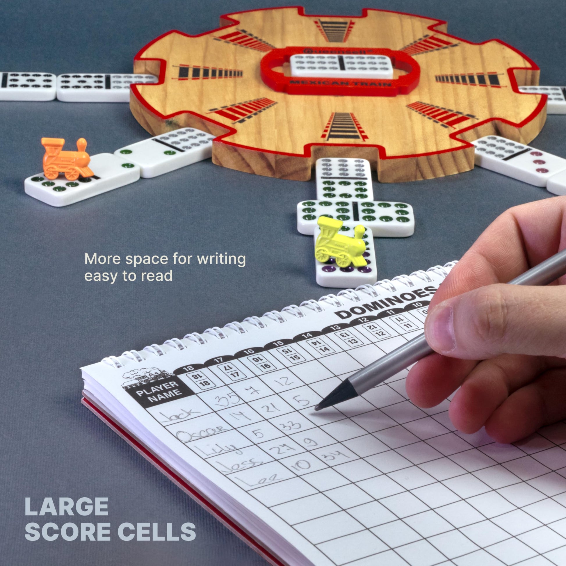 Extra Large Mexican Train Score Pads 11.3x7.9 in - 50-Page Mexican Train Accessories for Classic Domino Game - Mexican Train Score Sheets for Easy Game Tracking