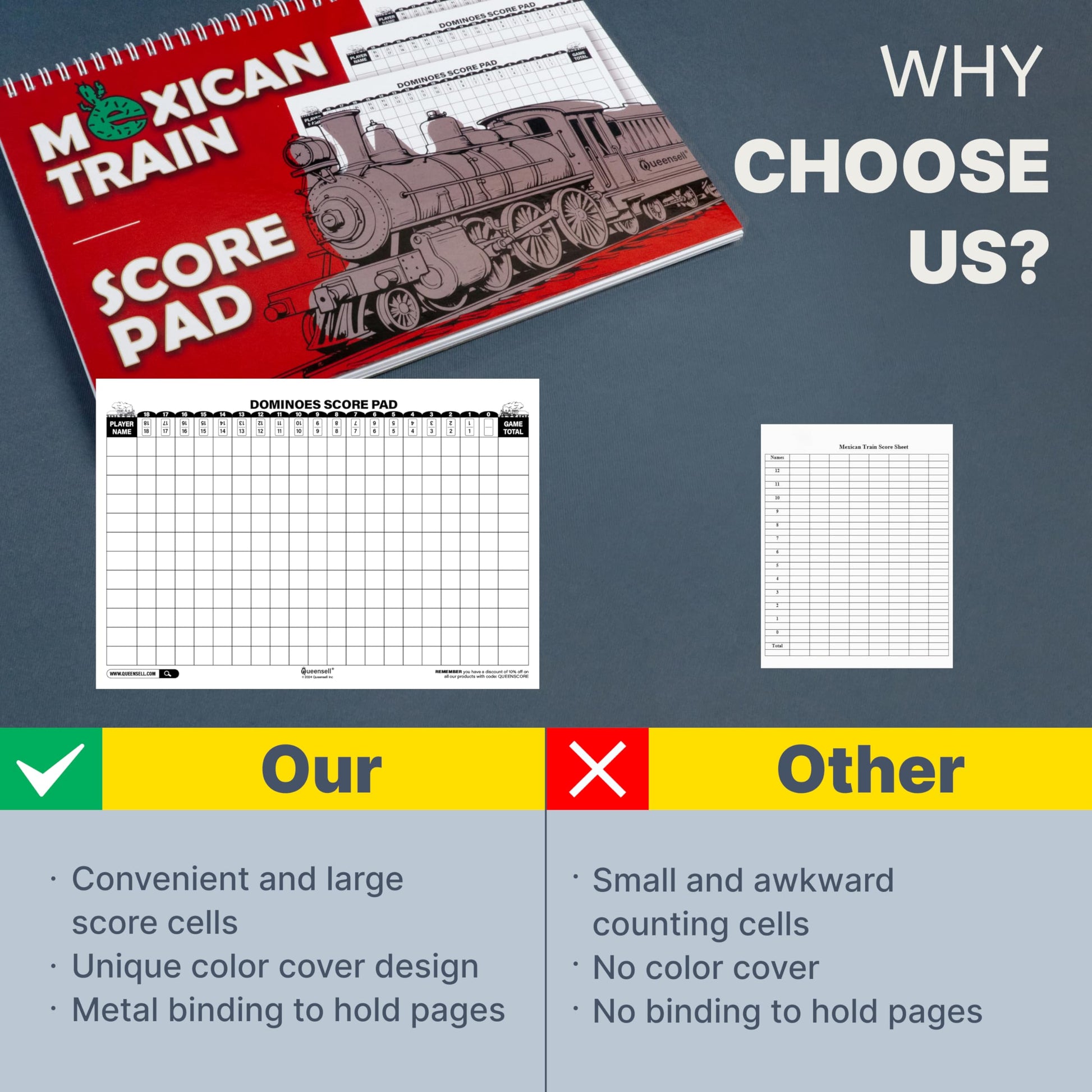 View compareExtra Large Mexican Train Score Pads 11.3x7.9 in - 50-Page Mexican Train Accessories for Classic Domino Game - Mexican Train Score Sheets for Easy Game Tracking