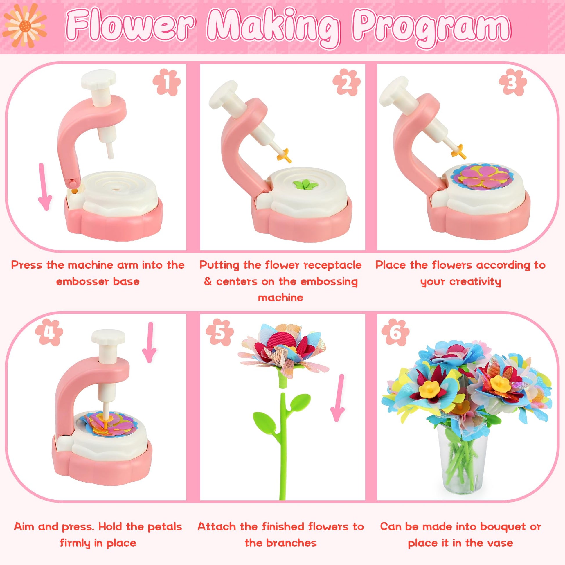 ? Bloom Creativity with Hands-On Magic! ? Designed for little artists aged 3-8, this Enchanted Flower Press Studio combines nature exploration and artistic flair! Girls can press petals into delicate specimens and craft everlasting fabric bouquets using vibrant, soft petals. ?? Why Parents Love It: ? Science Made Fun - Learn flower through flower pressing, sparking curiosity in STEM. ? Fine Motor Skill Development - Wrapping stems improve hand-eye coordination and focus. ? Unleash Artistic Vision - Mix 90+ candy-colored petals to experiment with color theory and design. ? Role-Play Adventures - Pretend to run a flower shop, practicing counting and social skills. ?? Thoughtful Design, Safe Play Lightweight, food-grade ABS flower press with rounded edges for tiny hands. Durable non-woven fabric petals resist tearing, perfect for repeated crafting. Empowers independent creativity. ?? The Ultimate Gift for Curious Minds From Christmas stockings to birthday surprises, this all-in-one kit delights kids with endless creativity. ?? Nurture STEM Skills and Imagination-Where Every Petal Tells a Story! ?? Includes: flower press x1, colorful fabric petals x90, stems x28, bases x2, vase x2, flower centers x28, flower receptacles x28 , wrapping paper x4 , and an illustrated manual