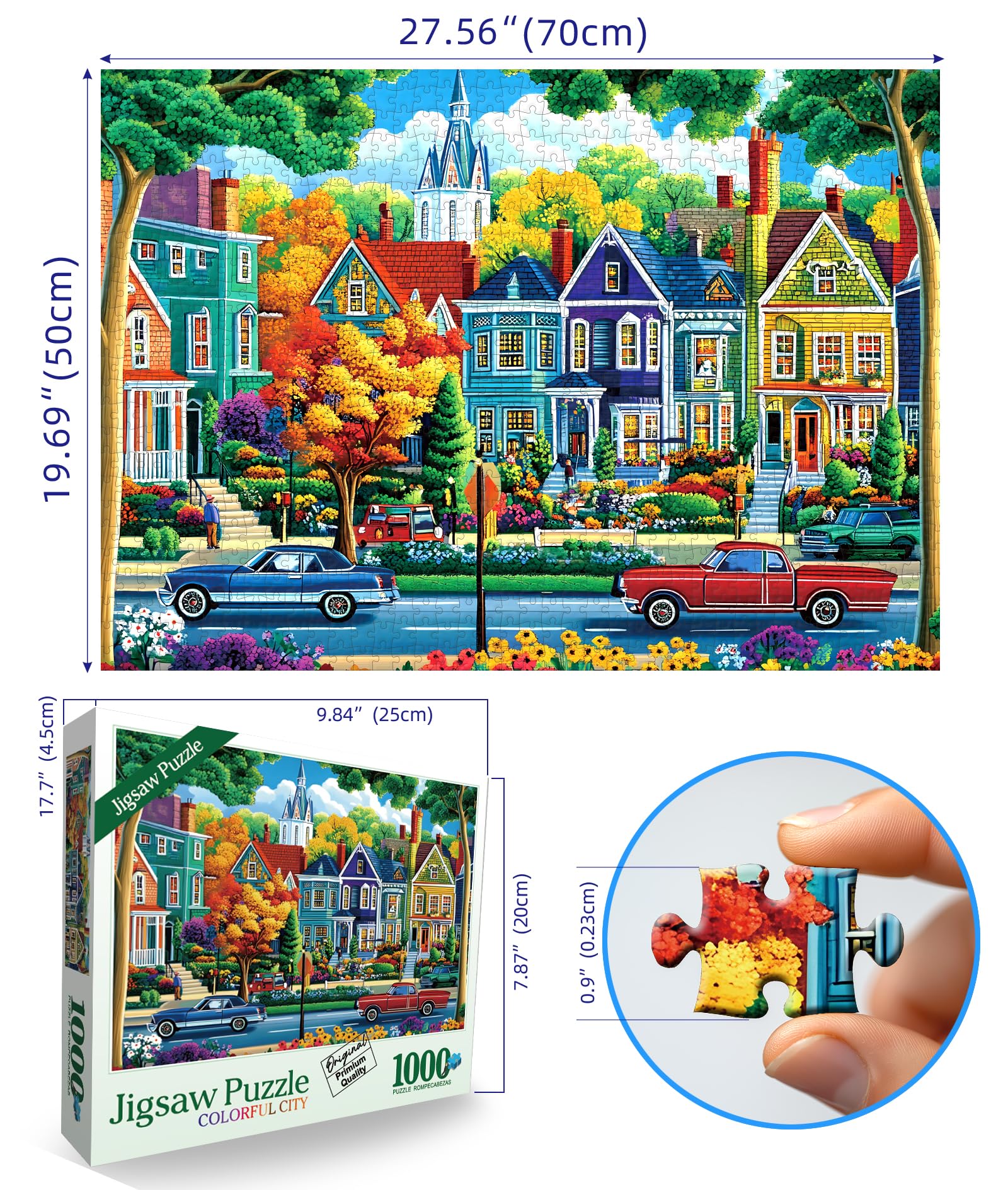 Fall City Landscape Puzzles For Adults 1000 Pieces Funny Colorful Autumn Vibrant Stree Jigsaw Puzzles 1000 Pieces Challenging Fa