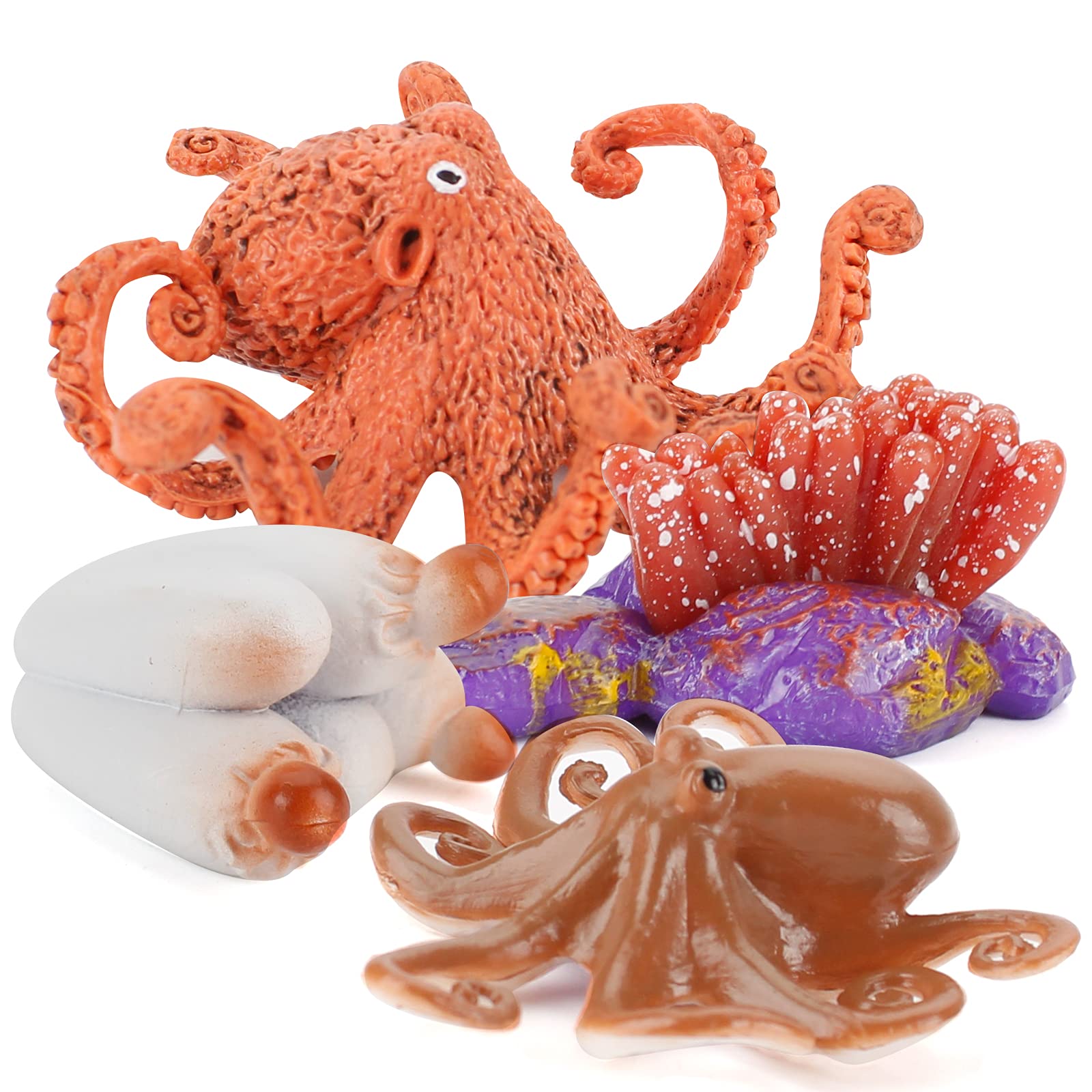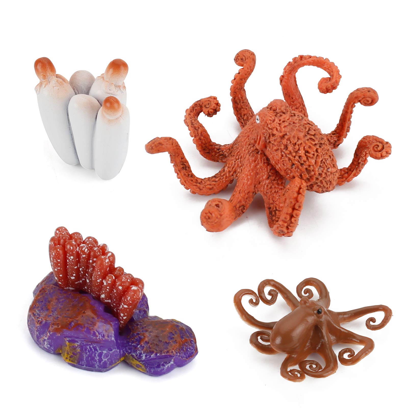 Fantarea 4 PCS Sea Marine Animal Figures Ocean Creatures Action Models Life Cycle Octopus Figure Ornament Cake Toppers Party Fav