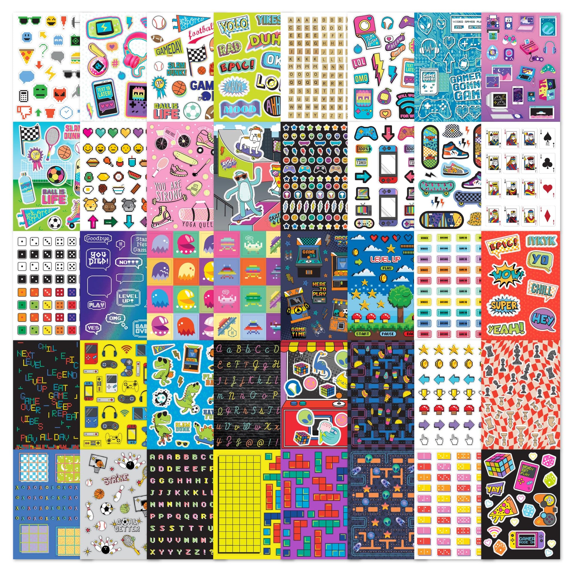 - Q: How many sticker sheets are included in the sticker book? A: The sticker book includes a total of 40 sticker sheets, featuring a variety of fun and colorful gaming stickers that can be used to customize personal items.