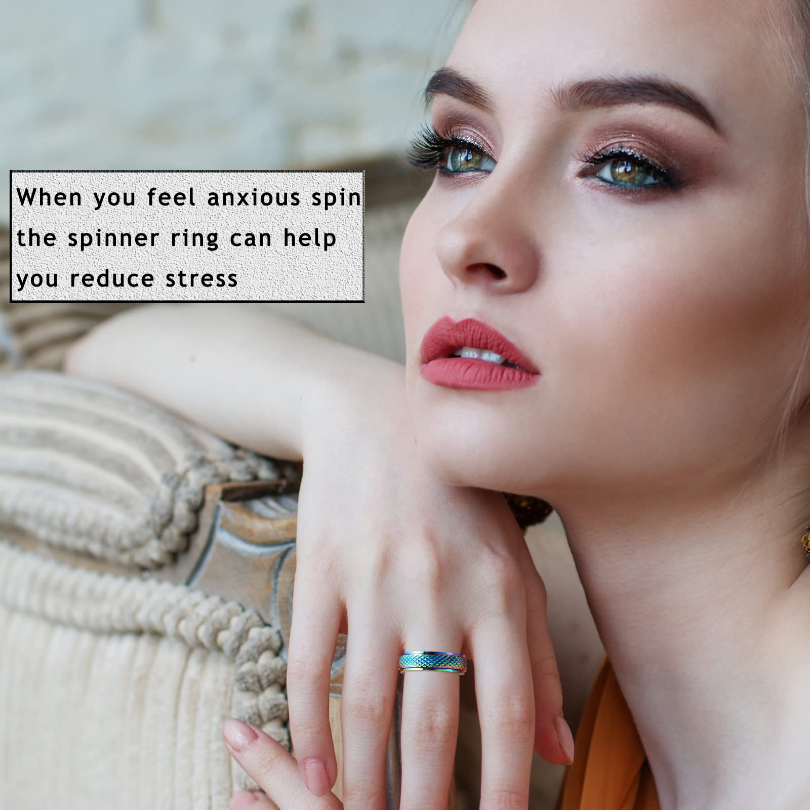 fekang Anxiety Rings Fidget Ring for Women Stress Relief Spinner Rings for Anxiety 4Pcs 6MM Titanium Steel Size 5-12 (7, 6mm spi
