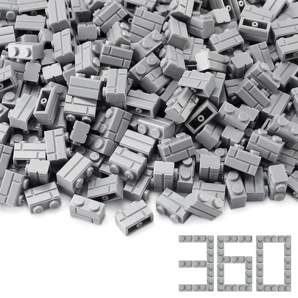 Feleph 360 Pieces 1X2 Masonry Profile Bricks Set Moc Building Blocks For Wall Parts And Pieces Diverse Bulk Toy Kit Compatible With Major Brands (Gray)