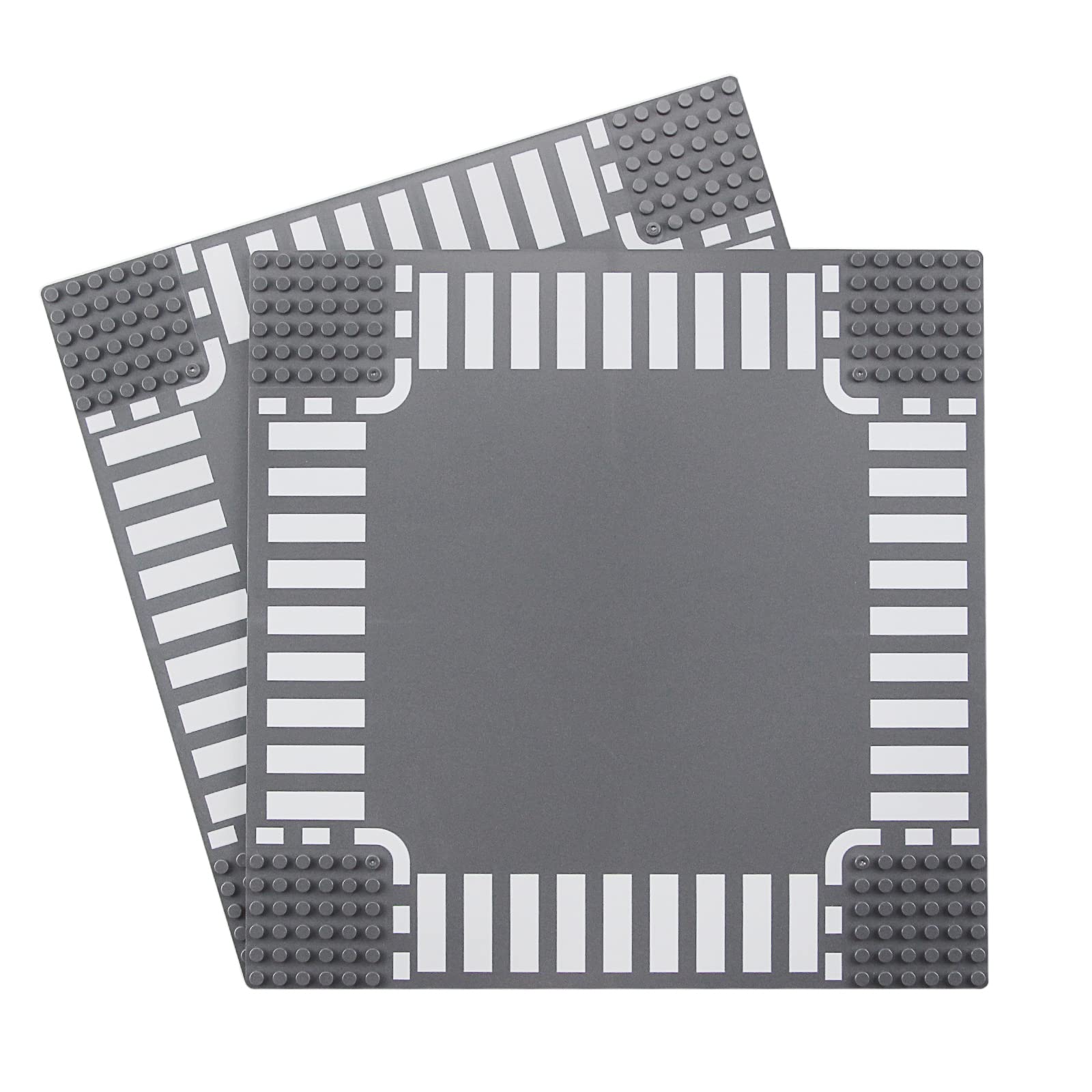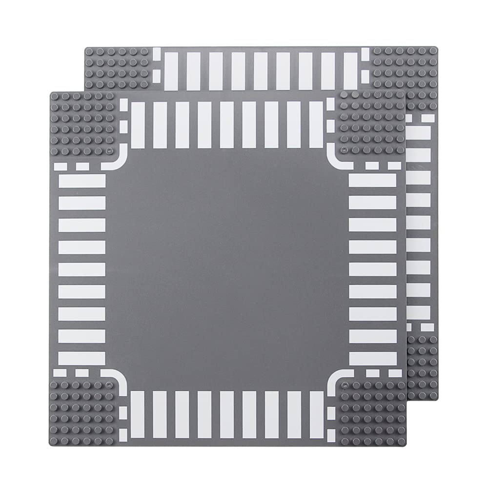 View compareFeleph Classic Crossroad Road Base Plates, City Street Building Kit, 25 X 25 Cm Town Baseplate For Building Bricks Compatible With All Major Brands (Crossroad 2 Pieces)