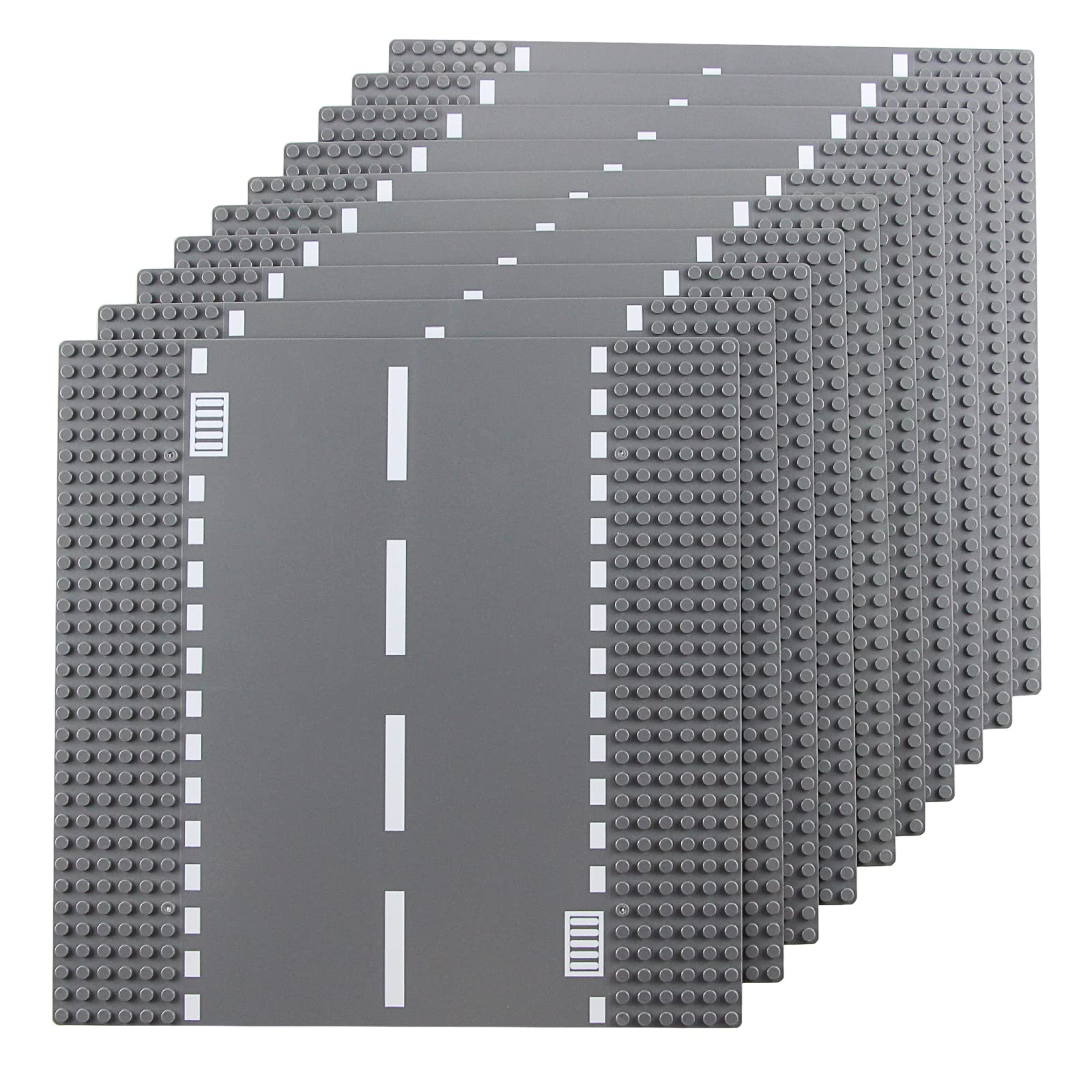 Feleph Classic Road Base Straight Plates, Street Road Building Set, 25 X 25 Cm Town Baseplate Compatible With Major Brands Building Bricks(Straight 10 Pieces)