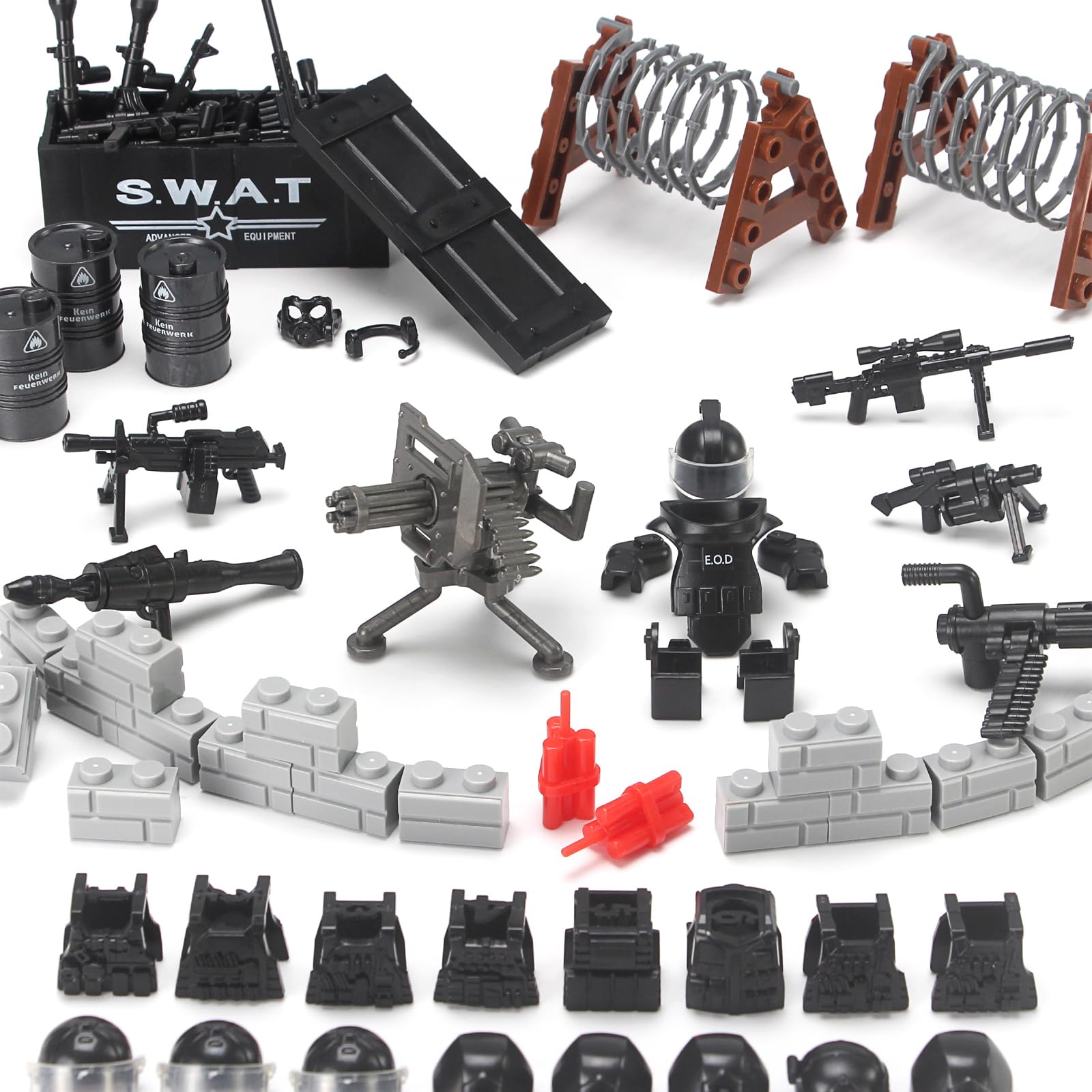 View compareFeleph SWAT Pack City Police Toy Set for Policeman Figures Black Modern Military Bricks Kit Gear Accessories Building Blocks Compatible with Major Brand