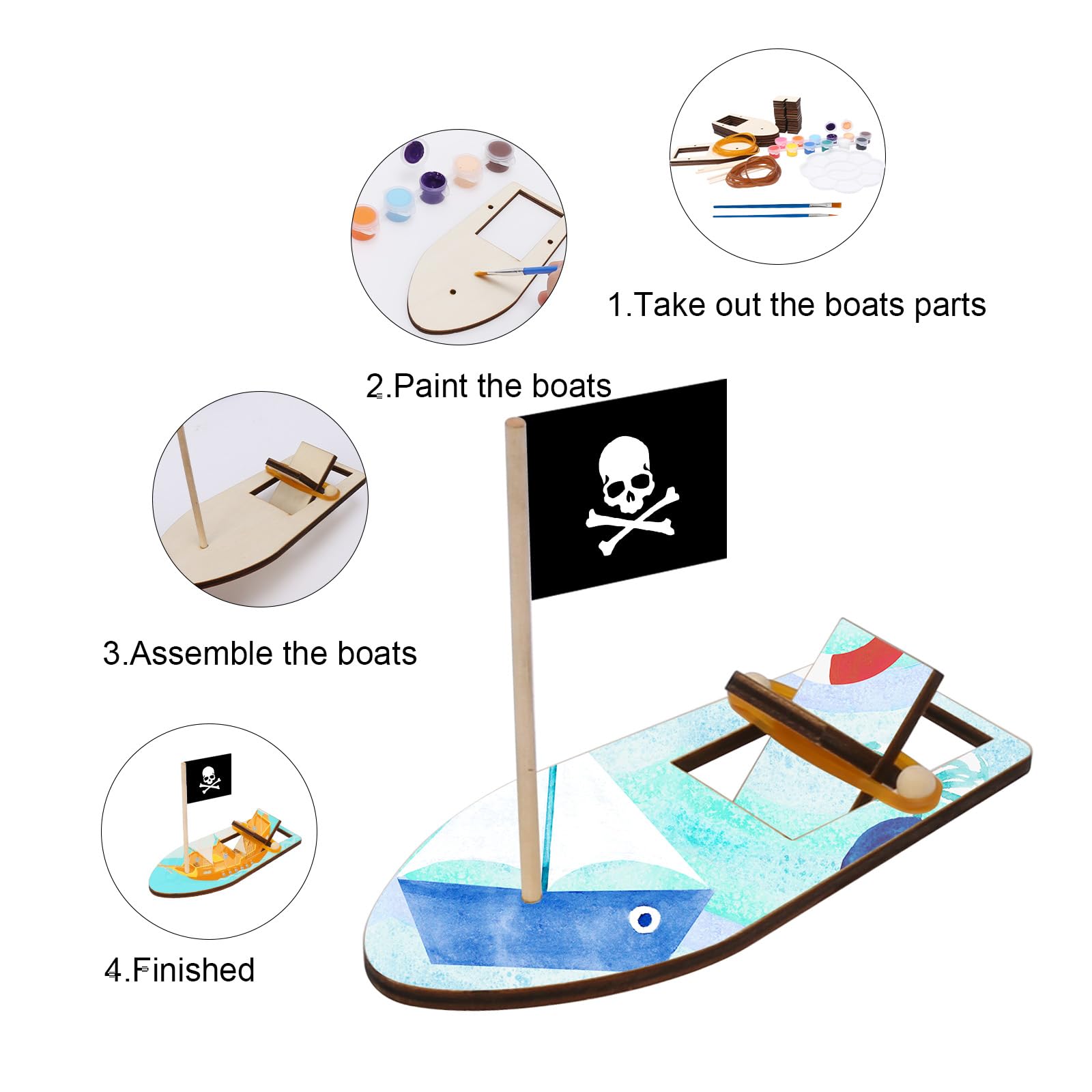 Specification: Material: Wood Package includes: 8x wooden boat 2x Paint brushes 2xpaint(12 colors) 1x palette 10x small rubber bands 10x largr rubber bands P(Notice:The flags are not included) How To Use : 1.Splices the two propellers 2.Attach rubber bands to he propellers 3.Connect the both ends of the stern 4.Place the wooden stick 5.DIY decorate use paint Play your imagination, according to your wishes, to make a beautiful dream boat. You can be finish the boat with your children, spend quality time with your children. Help to improve the imagination and creativity of children, bring your kids great pleasure.