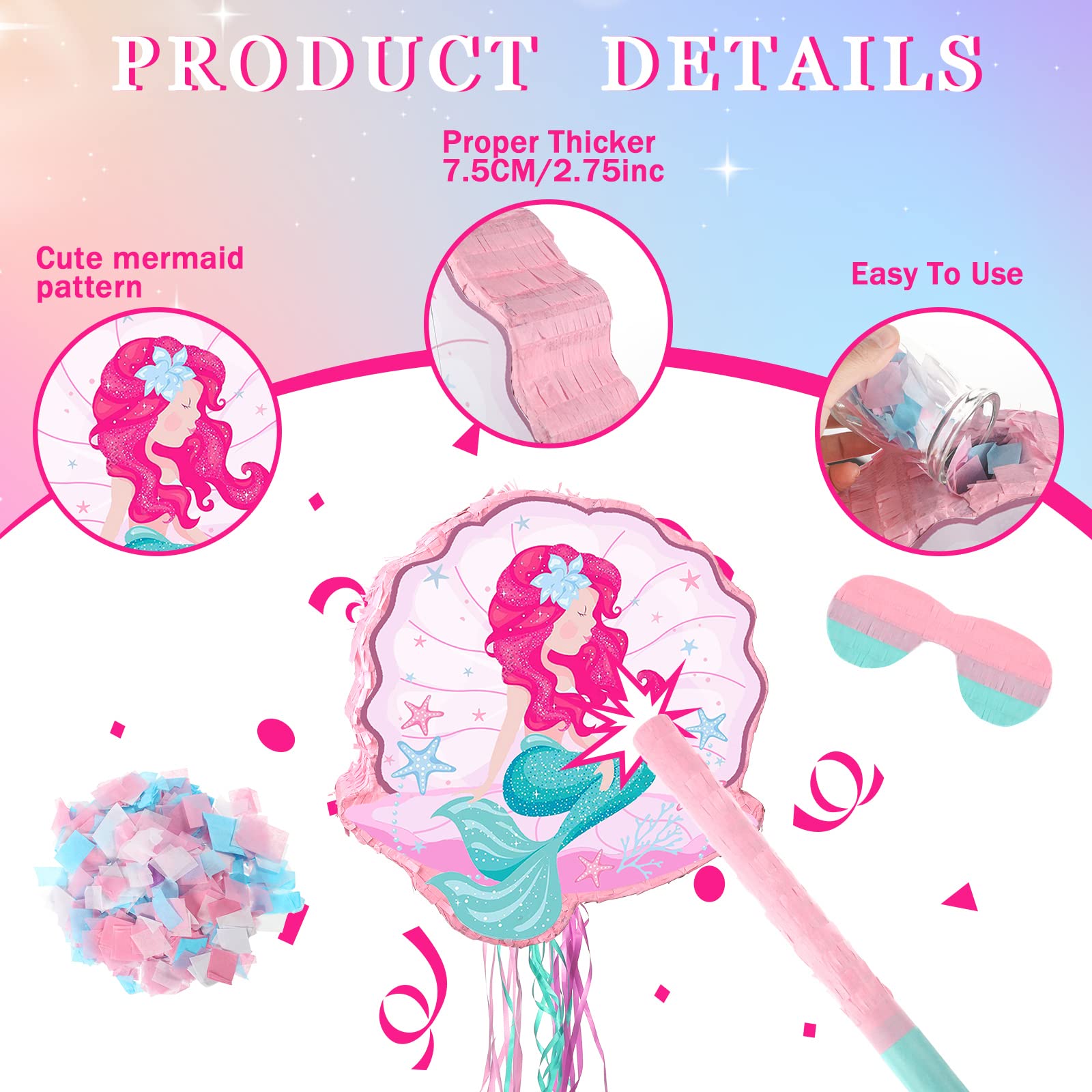 View compareFerraycle Mermaid Piata for Birthday Party Girl, Mermaid Party Supplies Piata with Blindfold, Bat and Confetti, Sea Ocean Theme
