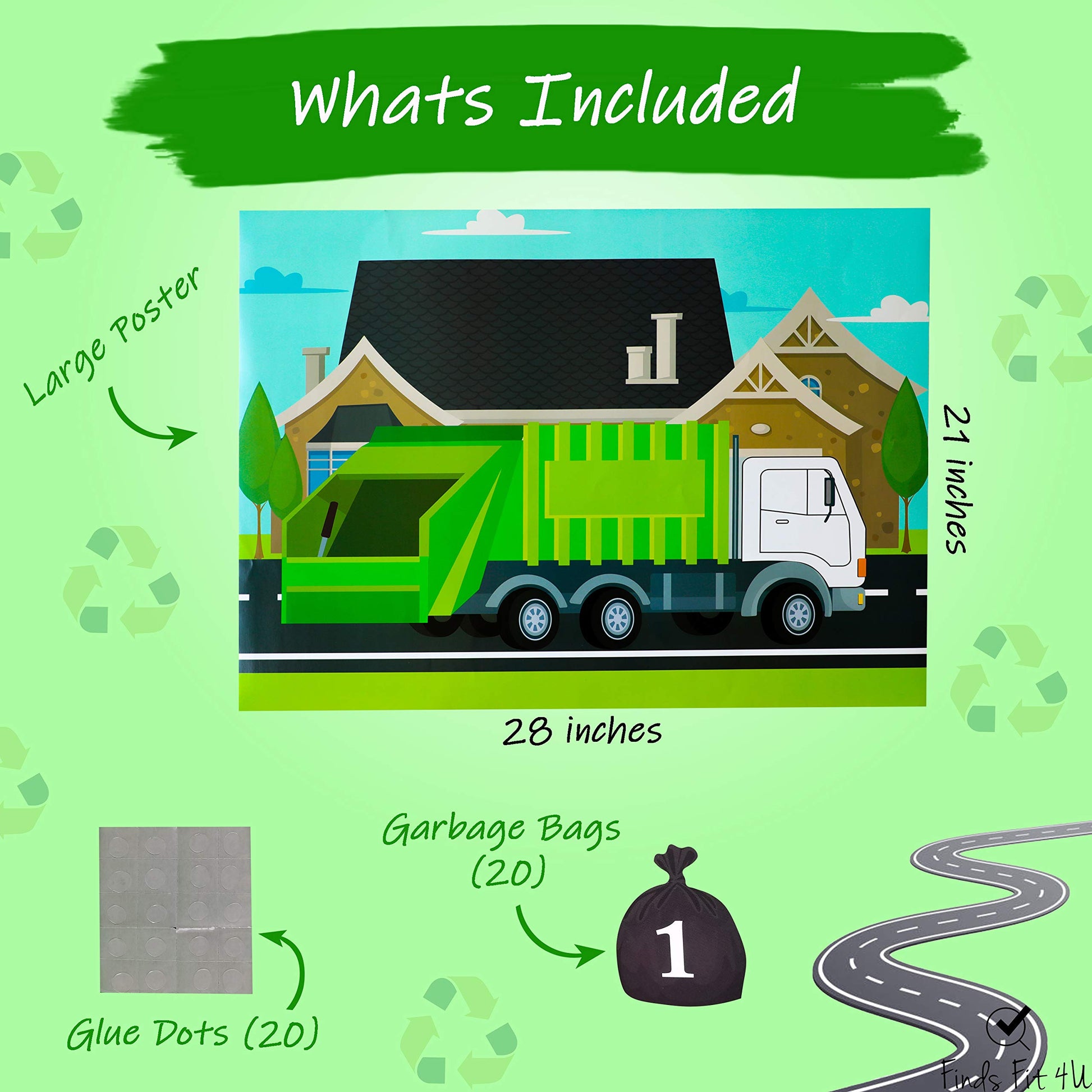 Finds Fit 4U Garbage Truck Party Game - Trash Truck Birthday Party Supplies -Fun for All Ages - Pin The Garbage on The Garbage T