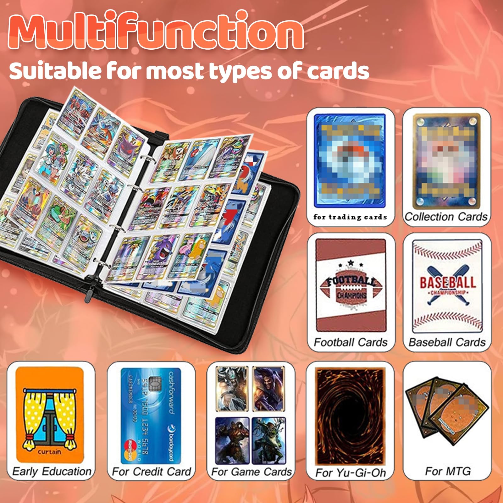 Keep your trading card collection safe and organized with this 9 Pocket Trading Card Binder. Featuring 50 pages of 9-pocket sleeves it can hold up to 900 standard size cards making it perfect for TCG MTG Yu-Gi-Oh sports cards and more. The durable water-resistant cover provides excellent protection against dust and moisture while the top loading pockets keep your cards secure. Whether youre a casual collector or a serious player this binder is the ideal storage solution for your valuable cards.