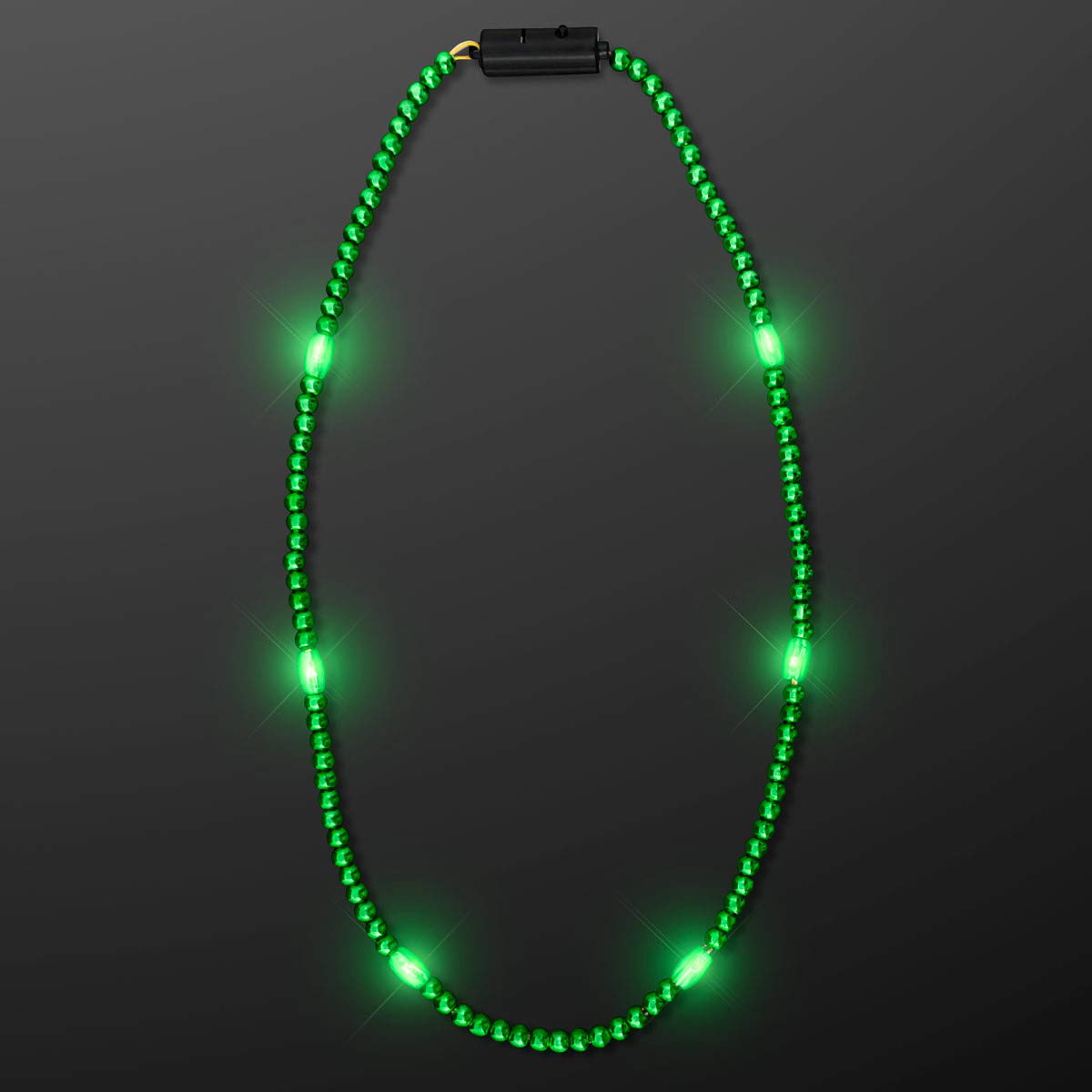 FlashingBlinkyLights Green Light Up LED Mardi Gras Bead Necklace