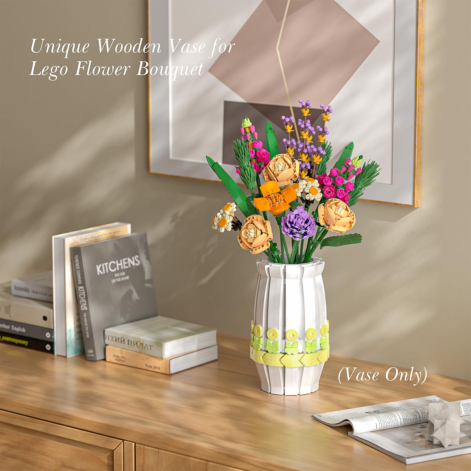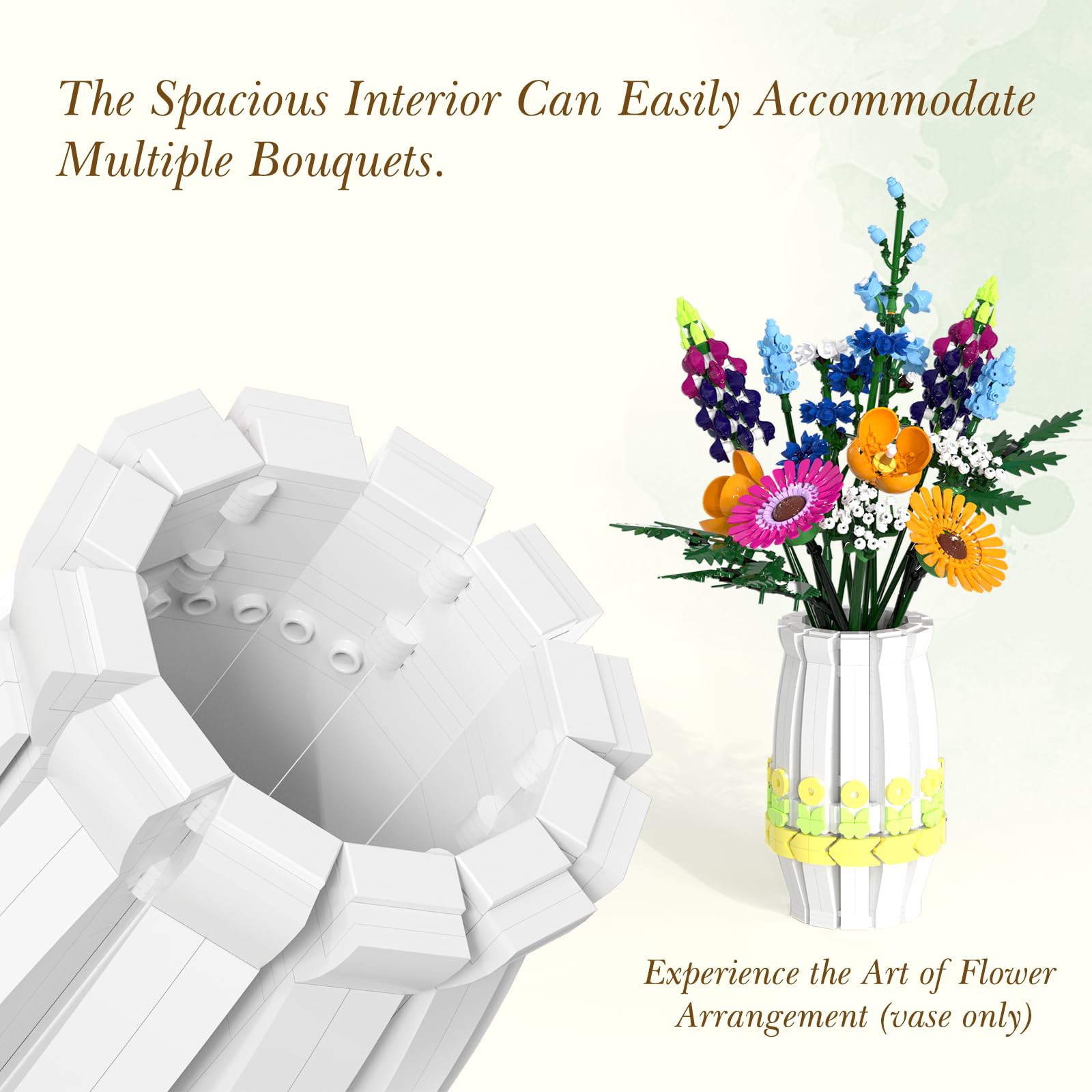 Flower Vase For Lego Bouquet, White Vase Building Set For Lego Roses Sunflowers Wildflower Daffodils Lotus Cherry Blossoms, For