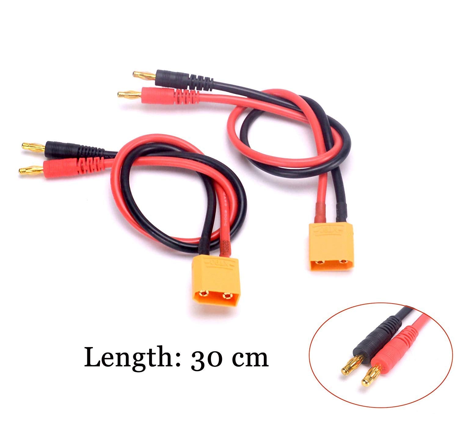 View compareFLY RC 2 Pack XT90 Charging Cable XT90 to 4.0mm Banana Connector Adapter Charger Wire 30cm 11.8inch 12awg Lipo Battery Charge Le