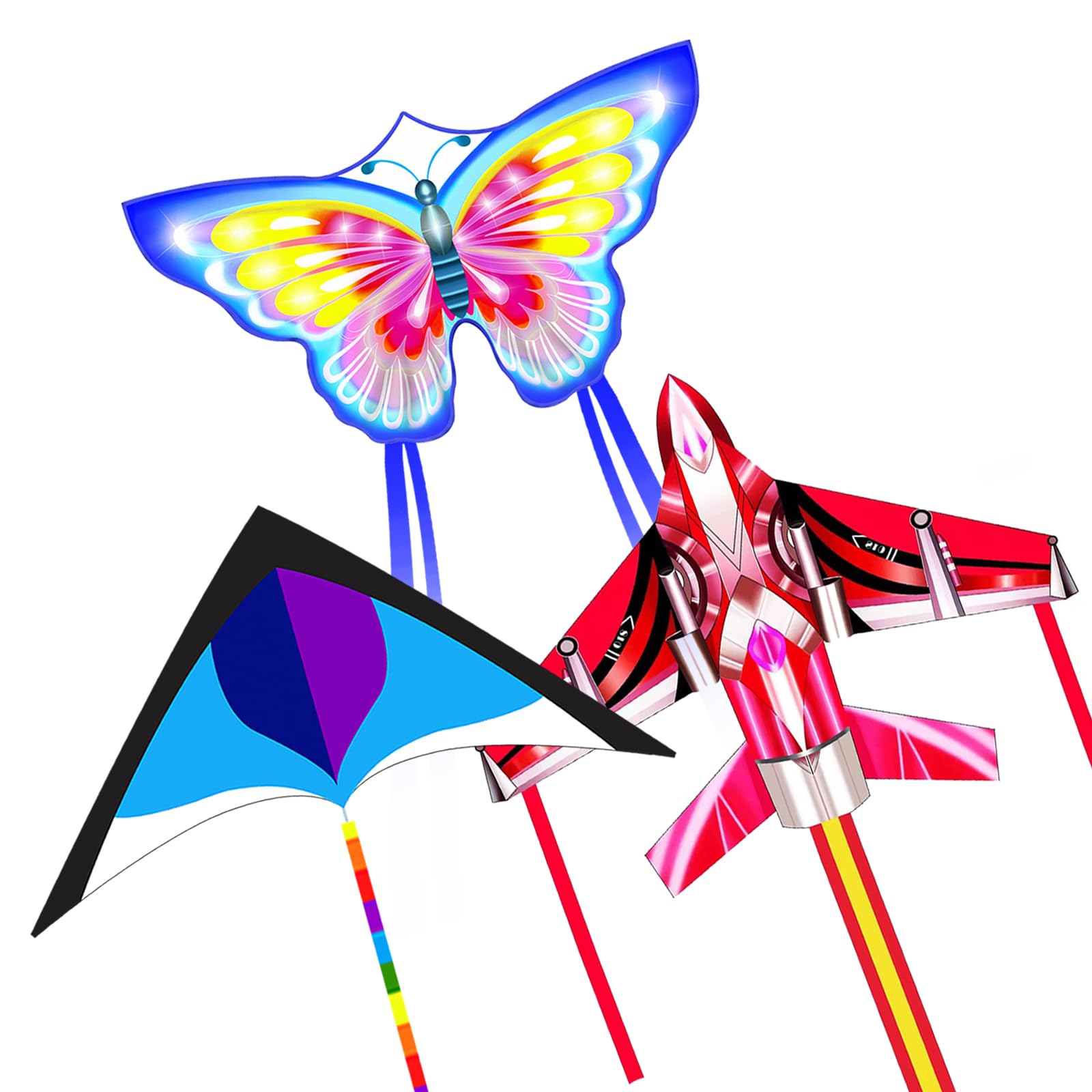 Unleash your inner aviator with this delightful kite set! Crafted with vibrant colors and eye-catching designs like the delta, butterfly, airplane, octopus, and rainbow, these kites are a joy to assemble and fly. Suitable for ages 4-8, 8-12, and adults alike, this set offers endless hours of outdoor fun for boys and girls. The large size and beginner-friendly string handle make it easy to control, even for first-timers. Constructed with durable nylon material, these 3D kites soar effortlessly in the breeze, providing an exhilarating experience for the whole family. Whether you're a seasoned kite enthusiast or just starting out, this set is a must-have for your next adventure in the great outdoors.