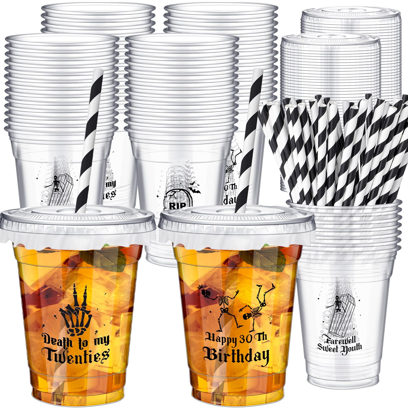 Foldtier 50 Pcs Death To My 20S Party Cups, Disposable Plastic Cups With Straws And Lids Clear Cup Birthday Party Supplies For K