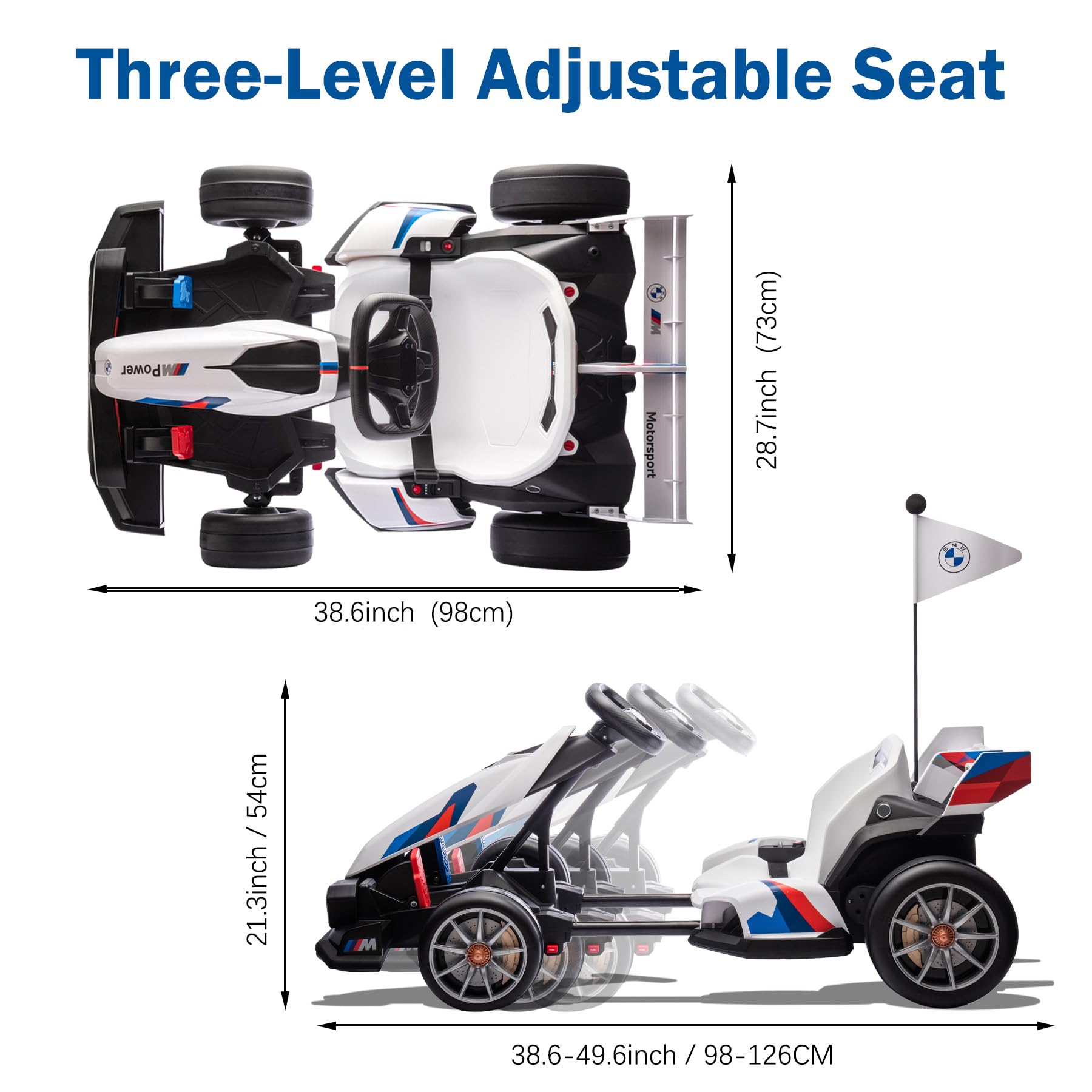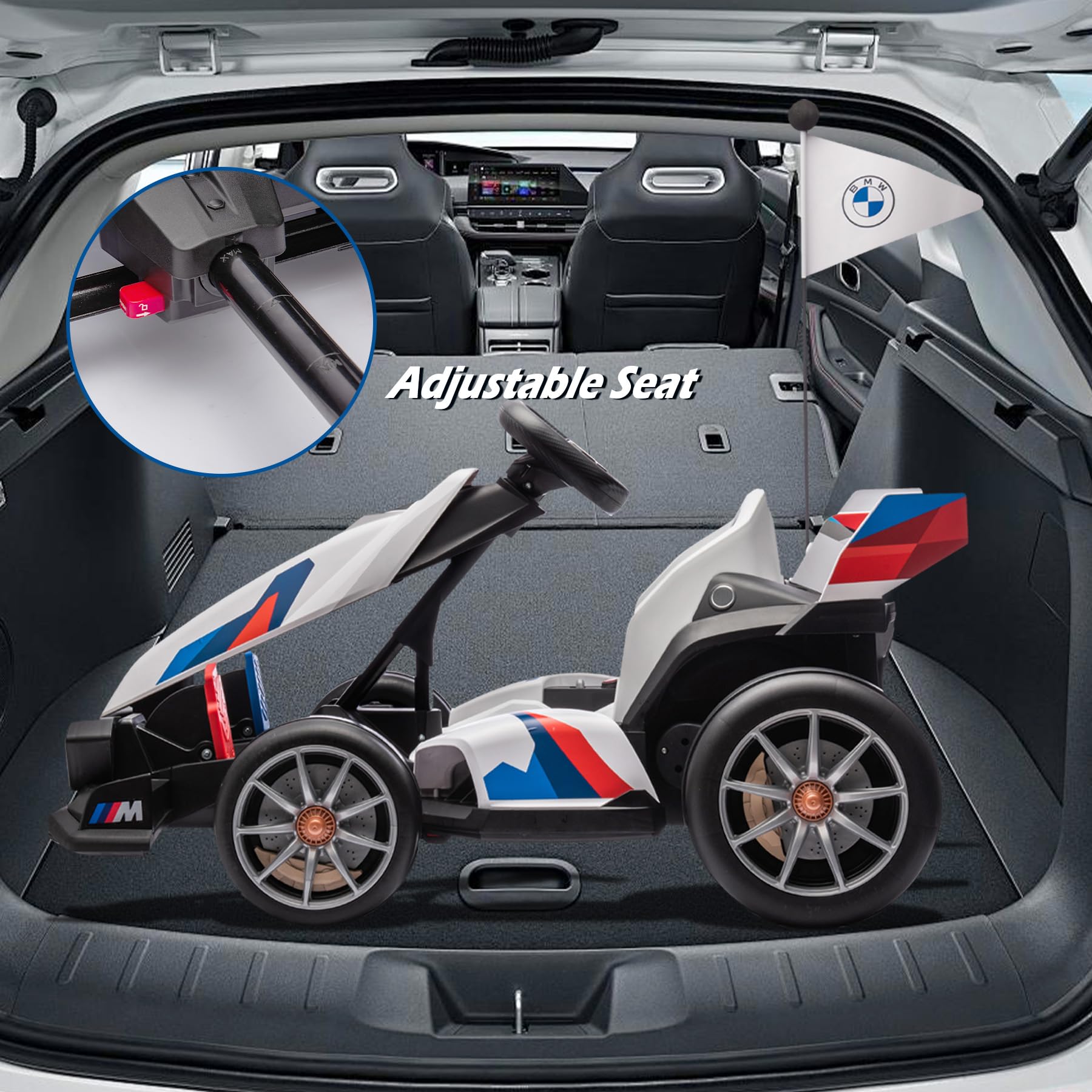 FORESEE 24V Licensed BMW Kids Electric Go Kart - Adjustable Seat, 7.5 MPH, Drifting, LED Lights, 132 lbs Capacity, for Ages 6+,