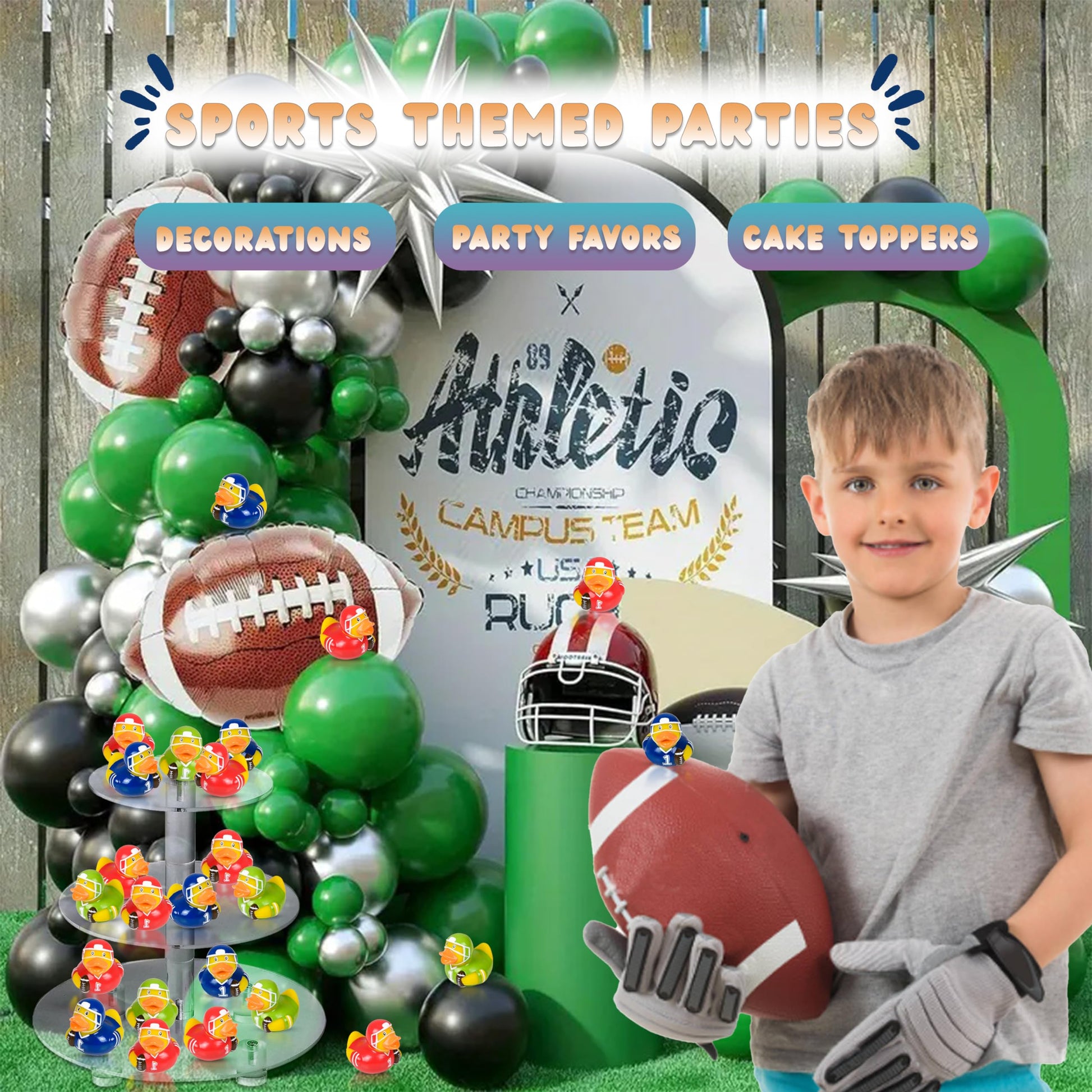 SCORE BIG WITH THESE SPORTS-THEMED RUBBER DUCKIES! Looking for some cool toys to add some fun and excitement to your child's bath time or your sports-themed party? Look no further than these tiny rubber ducks! This pack of 12 assorted rubber duckies includes hockey, baseball, football, and soccer designs, making it perfect for sports enthusiasts of all ages. Not just for bath time, these rubber duckies also make great toys for indoor and outdoor play. Your child can take them to the pool or beach for some sporty fun in the sun, or use them to invent their own games. And with their durable, non-toxic rubber construction, you can rest easy knowing that they'll hold up to even the most enthusiastic play. Add A Playful Touch To Parties For the ultimate sports-themed party, use these yellow rubber ducks as decorations and party favors. Create a game station where kids can toss the duckies into a basket, or have a ''ducky hunt'' where kids search for the hidden duckies. Your guests will have a quacking good time, and you'll score big as the host with the most fun party in the neighborhood! Here is why you will love these little rubber ducks: Fun and playful toys for kids to enjoy. Introduces children to different sports and equipment. Made from safe and durable material. They are super easy to clean. Makes a unique and fun gift for sports enthusiasts. Perfect as party favors for sports-themed events. Get your kids active and engaged with these sports-themed rubber duckies - order now.