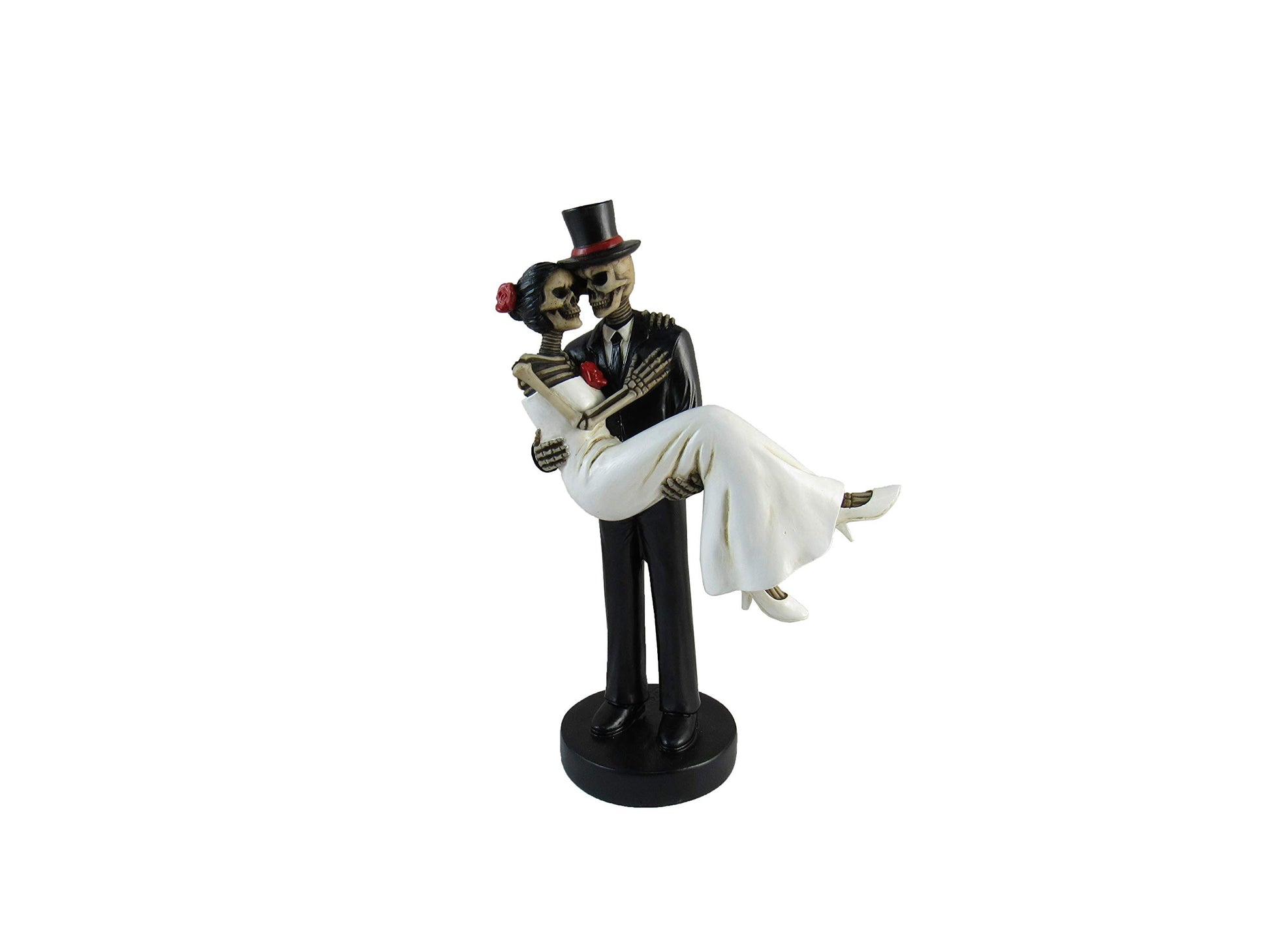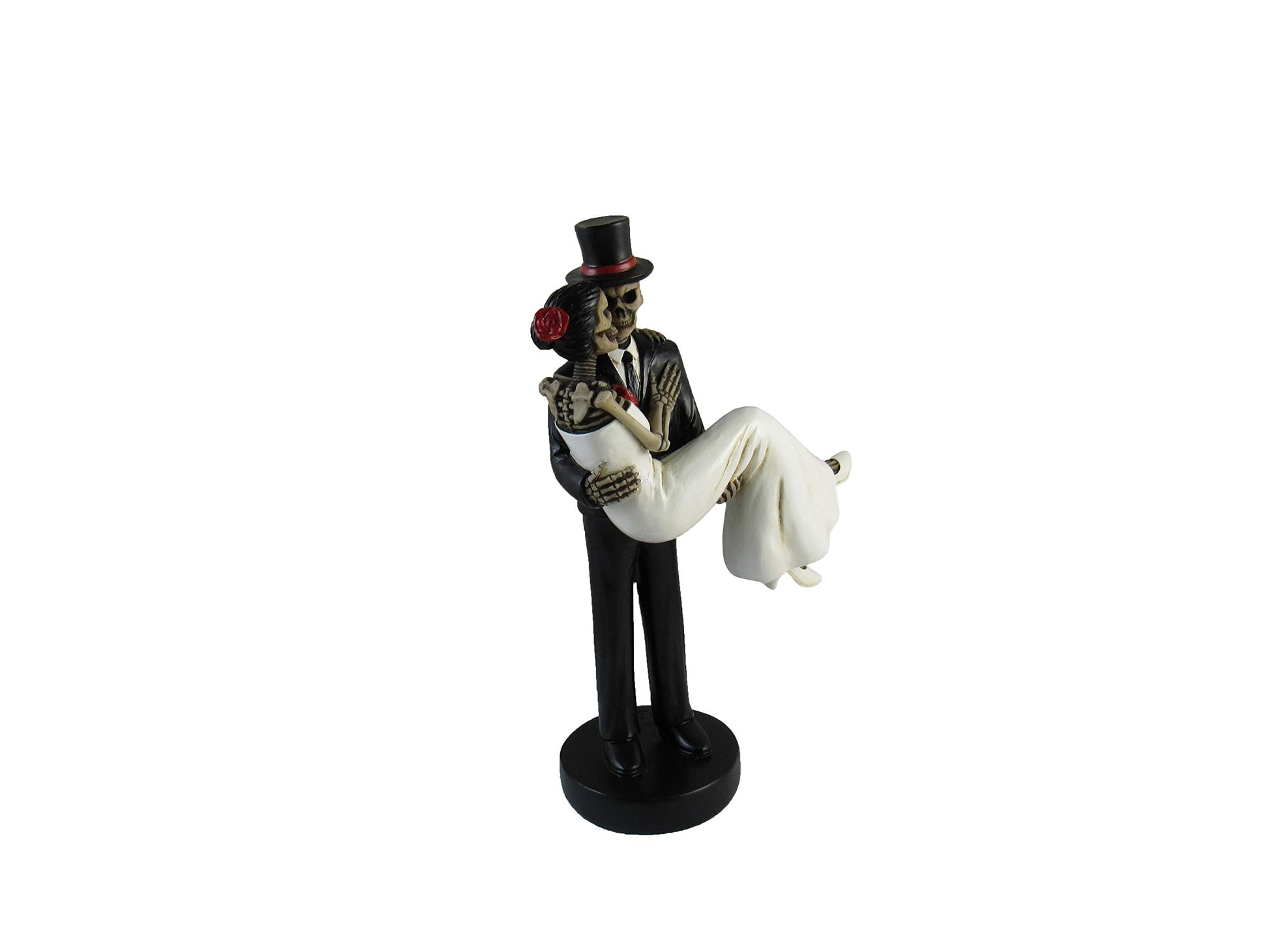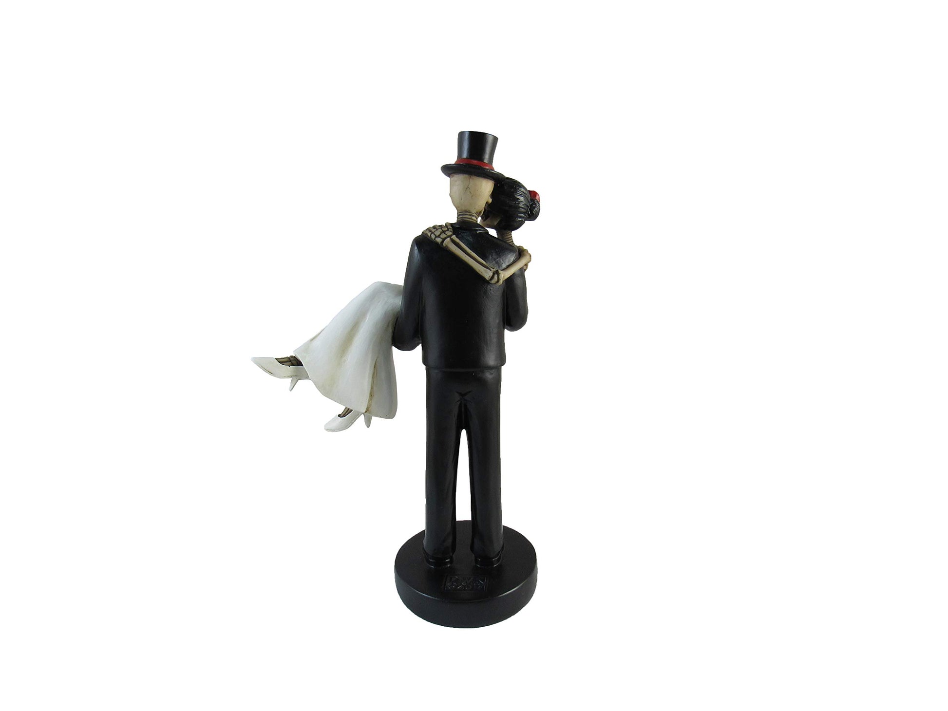 . Forever Yours Skeleton Bride and Groom Figurine. Made from resin. Approximately 8.5 inches tall (21cm). Includes original manufacturers box and packaging