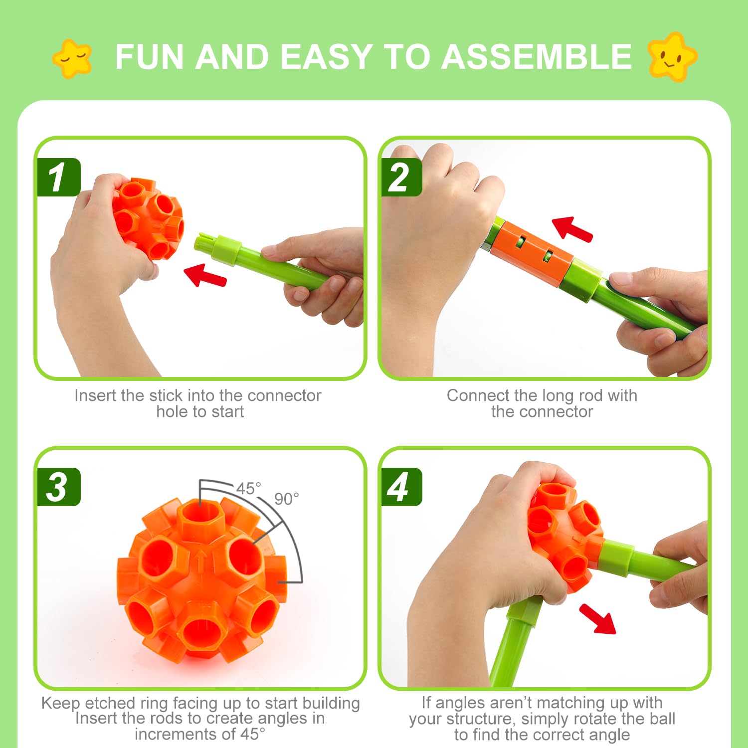 Unleash Your Child'S Creativity With Our Creative Fort Building Kit - The Ultimate Construction Toy That Offers Hours Of Imaginative Play! Each Kit Includes 30 Magic Balls, 64 Long Rods, And 46 Extend Connectors, Totaling 140 Pieces. With A Simple And Intuitive Connect System, Building And Disassembling Forts Has Never Been Easier. The Sturdy Yet Lightweight Design Ensures That The Forts Won'T Fall Apart, Providing A Secure Space For Your Little Ones To Explore Their Creativity.