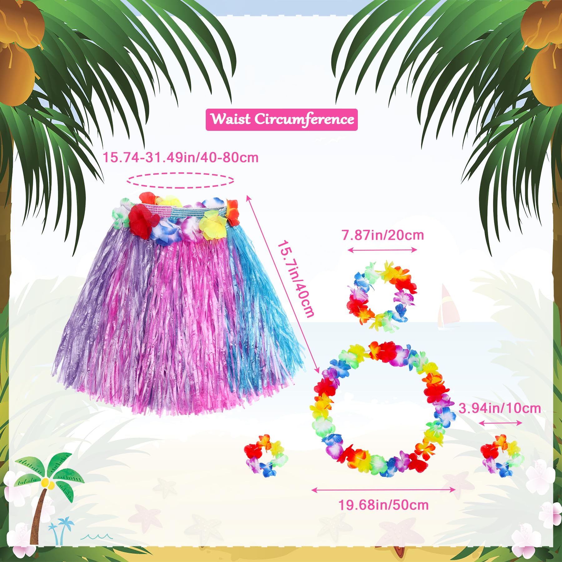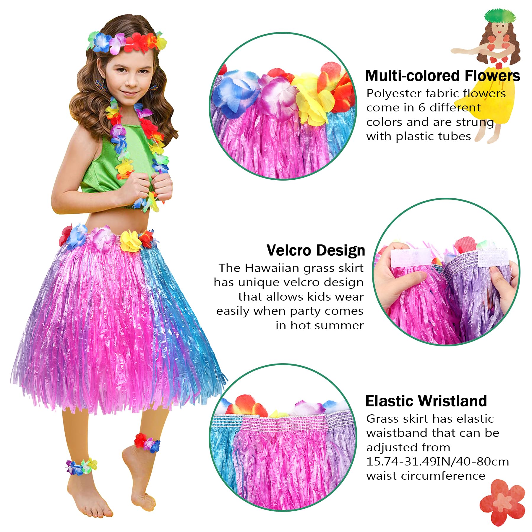 View compareFortuning'S Jds Girl'S Hawaiian Hula Grass Skirt Tricolor Matching Elastic Flowers Costume Set For Luau Tropical Beach Party Kid
