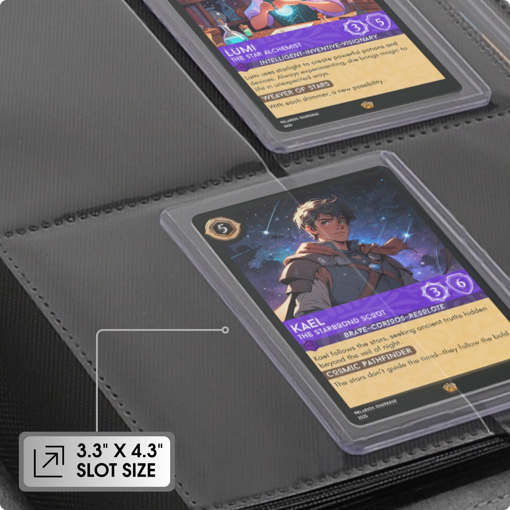 Toploader Binder is the ultimate solution to keep your cards se organized and easily accessible. Designed specifically for standard 3 x 4 toploaders this binder features reinforced pages with snug pockets to ensure your cards stay firmly in place without bending or slipping. The durable outer cover is crafted from enhanced materials to offer long-lasting protection against dust spills and daily wear. Its zipper closure adds an extra layer of security while the sleek handle makes it convenient to carry to conventions tournaments or trade meetups. Whether you're a collector or a competitive player this binder combines functionality with a professional look-perfect for showcasing your most valuable cards in style.